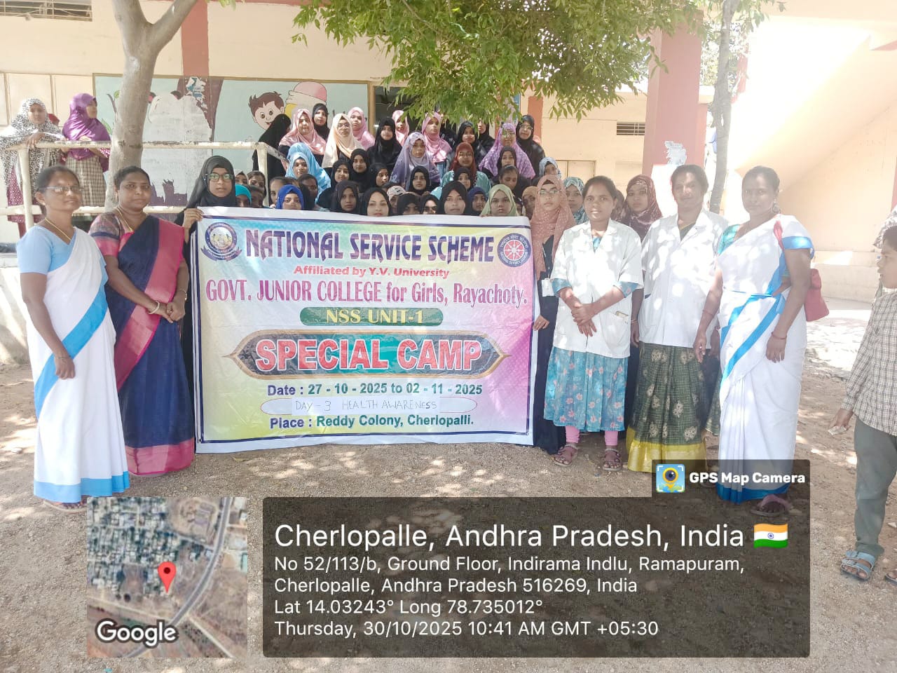 NSS ప్రత్యేక శిబిరం లో భాగంగా నేడు ఆరోగ్యం పై అవగాహన సదస్సు .చేతికి వచ్చిన పంటలు నీటి పాలు వెంటనే ప్రభుత్వం ఆదుకోవాలి
