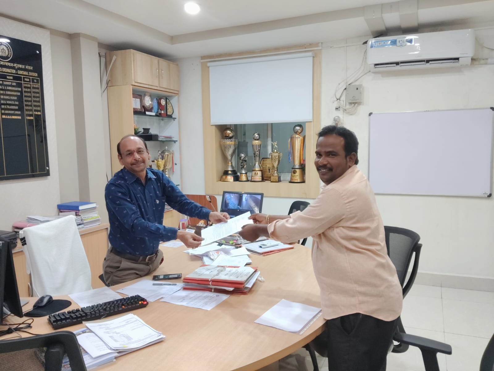 రైల్వే అండర్ బ్రిడ్జి వాటర్ లీకేజీ పై డి.ఈ.ఎన్జి. బి. ఎస్ శ్రీనివాస్ ని కలసిన కన్సల్టేటివ్ మెంబెర్ రాచూరి మురళి