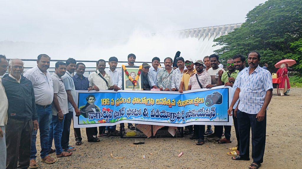 నాగార్జునసాగర్ లో ఘనంగా 186 వ ప్రపంచ ఫోటోగ్రాఫర్ల దినోత్సవం వేడుకలు నిర్వహించారు సాగర్ ప్రాజెక్టు ప్రధాన జల విద్యుత్ కేంద్రం వద్ద సభ్యులతో కలిసి ముందుగా ఫోటో గ్రఫీ పితామహులు లూయిస్ డాగ్యూరే చిత్ర పటానికి పూలమాల వేసి ఘన నివాళులు అర్పించారు ఆ తరువాత కేక్ కట్ చేసి శుభాకాంక్షలు తెలిపారు అనంతరం మిఠాయిలు పంపిణీ చేశారు ఈ కార్యక్రమంలో నరసింహ రాజు శివనాగులు శంకర్క నకరాజు అప్పారావు స్వతంత్ర బాబు అమ్మోరయ్య నరేంద్ర ధనరాజు తాతారావు కృష్ణ సురేష్ పుస్పాటి కోదండవెంకటేశ్వర్లు వెంకటేష్ వెంకటేష్,రాజ్ కుమార్ తదితరులు పాల్గొన్నారు.