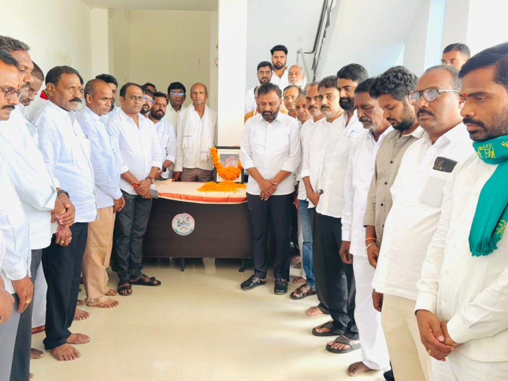 కామారెడ్డి జిల్లా జుక్కల్ నియోజకవర్గం ఎమ్మెల్యే క్యాంపు కార్యాలయంలో జుక్కల్ ఎమ్మెల్యే తోట లక్ష్మీ కాంతారావు బిచ్కుంద మండల కాంగ్రెస్ పార్టీ సీనియర్ నాయకులు మల్లికార్జున్ అప్పా షెట్కార్ గారి చిత్ర పటానికి జుక్కల్ నియోజకవర్గం కాంగ్రెస్ పార్టీ నాయకులు మరియు కార్యకర్తలతో కలిసి పూలమాల వేసి నివాళులు అర్పించి మౌనం పాటించారు. ఇట్టి కార్యక్రమంలో ఎమ్మెల్యే తో పాటు డెలికేట్ విఠల్ రెడ్డి, నిజం సాగర్ పార్టీ అధ్యక్షు డు మల్లేష్, పార్టీ అధ్యక్షుడు సాయిలు బిచ్కుంద పార్టీ అధ్యక్షుడు గంగాధర్ మాజీ జెడ్పిటిసి నాగనాథ్, జుక్కల్ సొసైటీ చైర్మన్ శివానంద్, మీర్జాపూర్ ఆలయ కమిటీ చైర్మన్ రామ్ పటేల్ ,రమేష్ దేశాయ్ శ్యామ్ పటేల్, పుల్కల్ మాజీ సొసైటీ చైర్మన్ వెంకట్ రెడ్డి , రవి పటేల్ , మాజీ మార్కెట్ కమిటీ చైర్మన్ సాయ గౌడ్, సతీష్ పటేల్, అజీమ్, జుక్కల్ నియోజకవర్గం కాంగ్రెస్ పార్టీ కార్యకర్తలు తదితరులు పాల్గొన్నారు