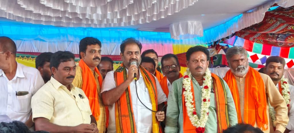 తాళ్ళరేవు మండలం చొల్లంగి గ్రామం లొని శ్రీ శ్రీ అభయాంజనేయ స్వామి దేవస్థానము నూతన చైర్మన్ మరియు సభ్యుల ప్రమాణ స్వీకార కార్యక్రమానికి హాజరైన ప్రభుత్వ విప్ మరియు ముమ్మడివరం శాసనసభ్యులు శ్రీ దాట్ల సుబ్బరాజు . పితాని బాలకృష్ణ తాళ్ళరేవు మండలం చొల్లంగి గ్రామంలోని శ్రీ శ్రీ అభయాంజనేయ స్వామి దేవస్థానం మనకు కూటమి ప్రభుత్వం నూతనంగా ప్రకటించిన ధర్మకర్తల మండలి మరియు చైర్మన్ ల ప్రమాణ స్వీకార కార్యక్రమం ఈరోజు వేడుక జరిగింది.ముందుగా ఆలయ ఈవో నూతన చైర్మన్ స్వర్ణ వి.వి సింహాద్రి( శ్రీను) గారు మరియు సభ్యులచే ప్రమాణ స్వీకారం చేయించారు.తదుపరి ఈ కార్యక్రమానికి ముఖ్య అతిథిగా విచ్చేసిన ప్రభుత్వ విప్ మరియు ముమ్మిడివరం శాసనసభ్యులు దాట్ల రాజు ఈ కార్యక్రమం ను ఉద్దేశించి మాట్లాడారు.ముందుగా శ్రీ శ్రీ అభయాంజనేయ స్వామి వారి దేవస్థానానికి చైర్మన్ మరియు సభ్యులుగా ఎన్నికైన మీ అందరికీ నా హృదయపూర్వక శుభాకాంక్షలు ఆలయ అభివృద్ధిలో మీ పాత్ర ఎంతో ఉంటుంది మీకు అప్పగించిన ఈ బాధ్యతలో సమర్థవంతంగా నిర్వహిస్తారని ఆకాంక్షిస్తున్నాను. తెలుగుదేశం జనసేన బిజెపి నాయకులు కార్యక్రమలో కూటమి సీనియర్ నేతలు కార్యకర్తలు అభిమానులు ప్రజలు ఆలయ అధికారులు మీడియా మిత్రులు పెద్ద సంఖ్యలో పాల్గొన్నారు.