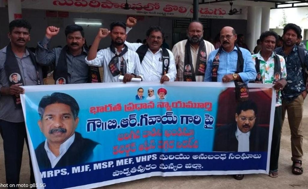 ఎమ్మార్పీఎస్ జాతీయ కమిటీ మరియు వ్యవస్థాపక అధ్యక్షుడు పద్మశ్రీ మందకృష్ణ మాదిగ అన్న ఆదేశాల మేరకు 13-10-2025 తేదీన ఆంధ్ర ప్రదేశ్ రాష్ట్ర వ్యాప్తంగా అన్ని జిల్లా కలెక్టర్స్ కార్యాలయంలో నిరసన కార్యక్రమాలు చెయ్యడం జరిగింది. జిల్లా కలెక్టర్ డా.ఎన్. ప్రభాకర రెడ్డి కి వినతి పత్రం ఇవ్వడం జరిగింది.భారతదేశపు అత్యున్నత న్యాయస్థానం భారత సుప్రీంకోర్టు ప్రధాన న్యాయమూర్తి దళితుడు అయిన బోషణ రామకృష్ణుడు గవాయి గారిపై జరిగిన దాడిని నిరసిస్తూ, ఈ ఘటనపై సమగ్రమైన విచారన జరిపించాలి.భారతదేశపు అత్యున్నత న్యాయస్థానం సుప్రీంకోర్టు ప్రధాన న్యాయమూర్తి అయినా దళితుడు బోషణ రామకృష్ణుడు గవాయి గారిపై జరిగిన దాడిని నిరసిస్తున్నాము ఈ ఘటనపై సమగ్రమైన విచారణ జరిపి దీని వెనుక ఉన్న శక్తులు గుర్తించి శిక్షించాలి అని డిమాండ్ చేస్తున్నాము.సీజే గారి మీద దాడి చేసిన వ్యక్తిపై న్యాయవాది రాకేష్ కిషోర్ పై కేసు నమోదు చేసి వెంటనే అరెస్టు చేయాలి. దాడి వెనుక ఉన్న శక్తులను గుర్తించేలా వారికి కూడా శిక్షలు పడేలా స్వతంత్ర దర్యాప్తు చేయాలి. అందుకోసం సుప్రీంకోర్టు లో ప్రజాస్వామిక వాదులుగా గుర్తించబడే సీనియర్ జడ్జిలతో విచారణ చేయించాలి.ఇలాంటి సంఘటనలు పునరావృతం కాకుండా తగు చర్యలు తీసుకోవాలి.కేంద్ర రాష్ట్ర ప్రభుత్వాలు తగిన చర్యలు చేపట్టాలి. దళితులకు ఆత్మగౌరవం రాజ్యాంగ రక్షణ కల్పించాలి. సుప్రీంకోర్టు ప్రధాన న్యాయమూర్తి పైన దాడి చేస్తే, సామాన్య పౌరుడికి రక్షణ ఎక్కడ ఉంటుంది.ఈ సంఘటనను బట్టి భారతీయ పౌరుడు కచ్చితంగా ఖండించాలి. 2025 మే 15న షెడ్యూల్ కులాల నుండి భారతదేశపు 52వ సుప్రీంకోర్టు ప్రధాన న్యాయమూర్తి గా బాధ్యతలు స్వీకరించిన బి.ఆర్ గవాయి, అంబేద్కర్ సిద్ధాంతాలపైన సామాజిక సమానత్వం,మానవ హక్కులపైన,న్యాయపరమైన విలువల పైన పూర్తి అవగాహన ఉన్న గొప్ప వ్యక్తి పై దాడి ప్రయత్నం అమానుష మైన చర్య. ఈ దాడికి పాల్పడిన న్యాయవాది రాకేష్ కిషోర్ పై చట్టపరమైన చర్యలు తీసుకోని శిక్షించాలి. అణగారిన వర్గాలైన ఎస్సీ, ఎస్టీలు ,ఐఏఎస్, ఐపీఎస్ అయిన సుప్రీంకోర్టు చీఫ్ జస్టిస్ చివరకు ఈ దేశానికి రాష్ట్రపతి అయిన కులం అంటారనితనం,కుల వివక్షత అణిచివేతలు వెంబడించి హింసిస్తున్నాయి. మానసికంగా,శారీరకంగా రక్షణ లేదు. సాధారణ నుండి సుప్రీంకోర్టు ప్రధాన న్యాయమూర్తి గారి పై దాడి నుంచి ఐపీఎస్ అధికారిపై ఆత్మహత్య ప్రేరేపితం వరకు కొనసాగుతున్నాయి. సామాజిక సమానత్వం లేని రాజకీయ ప్రజాస్వామ్య ఒక చిత్తు కాగితం లాంటిది అని డాక్టర్ బి.ఆర్ అంబేద్కర్ అన్నారు. అంబేద్కర్ అంటరానితనం కులం వారి వ్యవస్థలు నిర్మూలన జరగాలని సామాజిక అసమర్థులు ఆర్థిక అవసరతలు లేని,వివక్షతలు లేని అణచివేతలు లేని నవసమాజ రాజ్యాంగ బద్ధంగా అమ