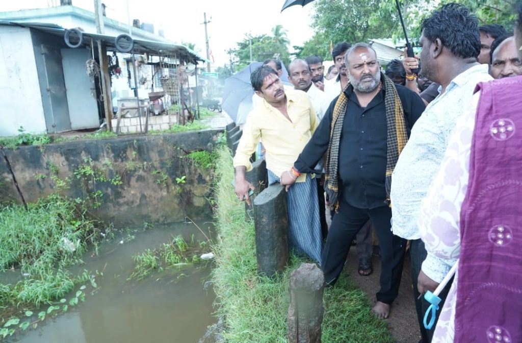 మొంథా తుఫాను ప్రభావంతో ఎడతెరిపి లేకుండా కురుస్తున్న వర్షాలకు యలమంచిలి నియోజకవర్గంలో గల సముద్రతీర ప్రాంతాలు,నదీ పరివాహక గ్రామాలను నియోజకవర్గ అధికార బృందంతో కలిసి స్థానిక ఎమ్మెల్యే సుందరపు విజయ్ కుమార్ సందర్శించారు. ఈ సందర్భంగా నియోజకవర్గంలో సోమవారం ఉదయం నుంచి రాంబిల్లి, మునగపాక.అచ్యుతాపురం మండలాల్లో సముద్ర తీర ప్రాంతాలను సందర్శించి, అక్కడ మత్స్యకారులకు జాగ్రత్తలు పాటించాలని తెలుపుతూ తుఫాను ప్రభావం తగ్గే వరకు సముద్రంలో వేటకు వెళ్లద్దని సూచించారు. అదే విధంగా శారదానదీ పరీవాహక ప్రాంతాలలో గల గ్రామాలను సందర్శించి నదీ వర్షాలకు ఎగువ నుంచి నీరు ప్రవాహా పరిస్థితులను అధికార బృందంతో కలిసి సమీక్షించి, ఎప్పటికప్పుడు పరిస్థితులను అంచనా వేస్తూ శారదానదికి దగ్గరలో ఉన్న పొలాల గట్లు కొట్టకుండా జాగ్రత్తలు తీసుకోవాలని సూచించారు. అదే విధంగా రిజర్వాయర్లను కూడా పరిశీలించారు.ఈ కార్యక్రమంలో