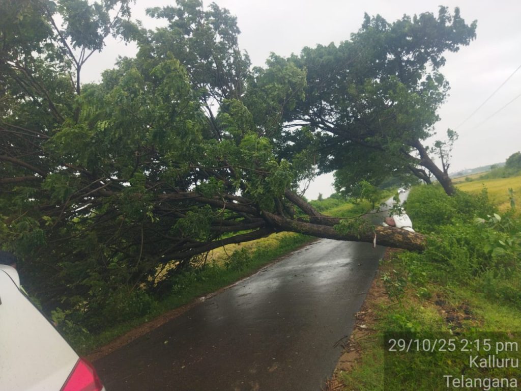 కల్లూరు టు పుల్లయ్య బంజరు ప్రధాన రహదారి పై నేలకొరిగిన వృక్షం