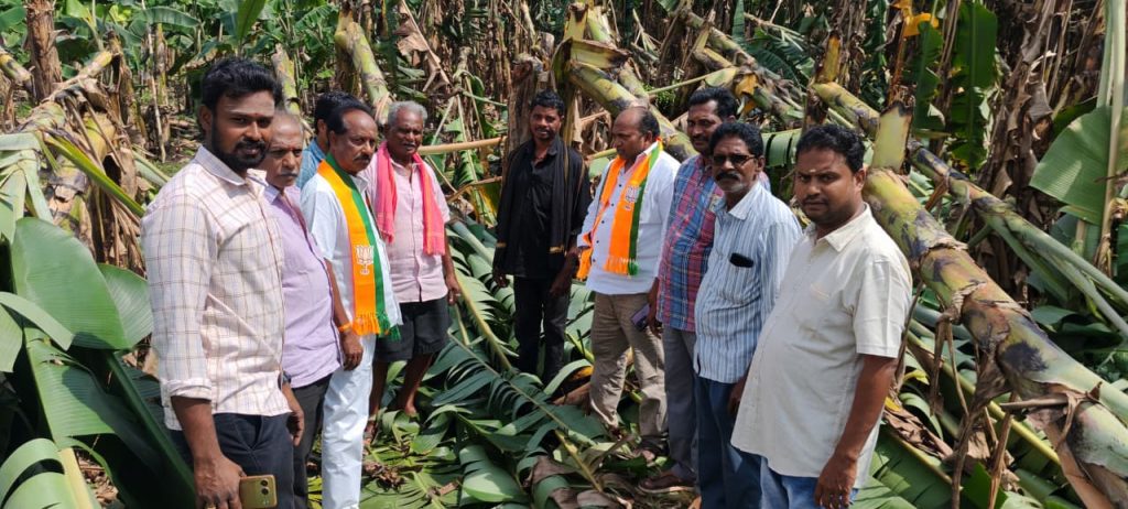 మొంథా తుఫాను ప్రభావం వరి రైతులపై అధికంగా పడిందని, ఉద్యాన, కూరగాయల పంటలు సైతం దెబ్బతిన్నాయని రాష్ట్ర బీజేపీ కార్యవర్గ సభ్యులు పాలూరి సత్యనందం వ్యాఖ్యానించారు. గురువారం కొత్తపేట మండలం కొత్తపేట బొరుసు వారి సావారం లో కొత్తపేట మండల బీజేపీ అధ్యక్షులు సంపతి కనకేశ్వరరావు ఆధ్వర్యంలో బీజేపీ నాయకులు తో కలసి పాలూరి సత్యనందం, అగ్రికల్చర్ డిపార్ట్మెంట్ వారు పర్యటించి అన్నదాతల ఇక్కట్లను పరిశీలించారు. పంట కోతకు వచ్చే సమయానికి తుఫాన్ రావడంతో వరి పొలాలు నేలనంటాయని రైతులు ఆవేదన వ్యక్తం చేశారు. ప్రతి రైతును ప్రభుత్వం ఆదుకుంటుందని పంట నష్టపోయిన రైతులందరికీ పరిహారం అందుతుందన్నారు. వ్యవసాయ అధికారులు క్షేత్రస్థాయిలో పర్యటించి నమోదు చేసి పరిహారం అందేలా చేస్తారని వారికి తెలియజేశారు. వరి ఎకరాకు రూ.8వేలు, అరటి ఎకరానికి రూ.14వేలు, కూరగాయల పంటలకు ఎకరాకు రూ.10వేలు నష్టపరిహారంగా అందించనున్నట్లు ఇప్పటికే ప్రభుత్వం ప్రకటించిందని తెలియజేశారు. కర్షకులకు అండగా నిలిచేందుకు కూటమి ప్రభుత్వం ముందు ఉంటుందన్నారు.ఈ కార్యక్రమం లో రాష్ట్ర యువ మోర్చా అధికార ప్రతినిధి పాలూరి జయ ప్రకాష్ నారాయణ, కోటిపల్లి దామోదర్, గొనె మడతల కనకరాజు, అన్యం సత్యనారాయణ, వలపశెట్టి కిరణ్, రైతులు తదితరులు పాల్గొన్నారు.