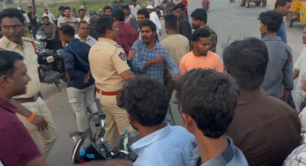మండలం నవంబర్ 14మైలవరంలో ఉద్రిక్తత యువకుడి మృతికి కారణమైన వారిని అరెస్టు చేయాలని మృతుని బంధువులు శుక్రవారం సాయంత్రం జాతీయ రహదారిపై ఆందోళన చేయడంతో మైలవరం లో ఉద్రిక్తత నెలకొంది. వివరాల్లోకెళ్తే జి కొండూరు మండలం కె.కండ్రికకు చెందిన మిక్కిలి రవి మరియమ్మ దంపతులకు మిక్కిలి సమీర్ (20) కుమారుడు, కుమార్తె కలరు. నిరుపేద కుటుంబం కావడంతో కూలి పనులు చేసుకుంటూ జీవిస్తూ ఉన్నారు. రవికి మరో ఇద్దరు సోదరులు కలరు.మూడు కుటుంబాలకు సమీరే వారసుడు. శుక్రవారం ఉదయం సమీర్ తన బాబాయ్ పాపారావుతో కలిసి పనులు నిమిత్తం ద్విచక్ర వాహనంపై ఈదర వైపు వెళుతున్నారు. ఈ క్రమంలో గణపవరం శివారు గణపతి గట్టు వద్ద ద్విచక్ర వాహనాన్ని పశువుల ఎరువు లోడుతో వెనుకవస్తున్న ట్రాక్టర్ ఢీకొనటంతో ట్రాక్టర్ వైపురహదారిపై సమీర్ పడ్డాడు. ట్రాక్టర్ ట్రక్కు టైరు సమీర్పై ఎక్కటంతో అక్కడకక్కడే మృతి చెందాడు. స్థానికులు గాయపడిన పాపారావును మైలవరం ప్రభుత్వాసుపత్రికి తరలించారు. సంఘటన స్థలానికి చేరుకున్న కుటుంబ సభ్యులు మృతి చెందిన సమీర్ ను చూసి రోధిస్తుండటంతో పలువురిని కంటతడ పెట్టించాయి. సంఘటన స్థలానికి పోలీసులు చేరుకొని కేసు నమోదు చేసి దర్యాప్తు చేపట్టారు. ఈ క్రమంలోచంద్రాల గ్రామానికి చెందిన పెద్దలు మృతుని బంధువులతో రాజీ ప్రయత్నాలు ప్రారంభించారు. రాజీ ప్రయత్నాలు ఫలించకపోవడంతో మృతుని బంధువులు ముందుగా జాతీయ రహదారి తిరువూరు బైపాస్ రింగ్ వద్ద ఆందోళన చేపట్టారు. మైలవరం సిఐ దాడి చంద్రశేఖర్, ఎస్సై సుధాకర్లు సిబ్బందితో సంఘటన స్థలానికి చేరుకొని ఆందోళన చేస్తున్న వారిని బలవంతంగాపోలీస్ స్టేషన్కు తరలించారు. మైనర్లకు ట్రాక్టర్లు ఇచ్చి మనుషులను చంపుతారా, కేసు నమోదు చేసిన ఎందుకు అరెస్టు చేయలేదని మృతుని బంధువులు నినాదాలు చేశారు.మాకు న్యాయం చేయమంటే పోలీసులు మమ్మల్ని అరెస్టు చేయటం ఎంతవరకు సబబు అని ప్రశ్నించారు. కొంత సమయం తర్వాత మృతుని బంధువులు పోలీస్ స్టేషన్ వద్ద జాతీయ రహదారిపై మరల ఆందోళన చేపట్టారు. బలవంతంగా పోలీసులు ఆందోళన చేస్తున్న వారిని తరలిస్తున్న సమయంలో పోలీసులకు మృతుని కుటుంబ సభ్యులకువాదోపవాదాలు జరిగి ఉద్రిక్తతకు దారితీసింది. పోలీసులు తమపై కఠినంగా వ్యవహరిస్తున్నారని బాధితులు నినాదాలు చేశారు. గంటకు పైగానే జాతీయ రహదారిపై ఆందోళన జరిగింది. దీంతో ట్రాఫిక్కు అంతరాయం కలిగింది. యువకుడి మరణానికి కారణమైన వారిని అరెస్టు చేస్తామని పోలీసులు హామీ ఇవ్వడంతో ఆందోళన విరమించారు.
