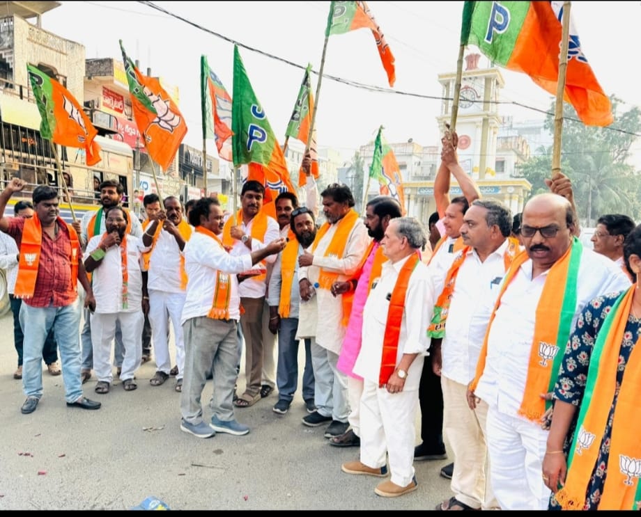 బీహార్ ఎన్నికల్లో ఎన్డీఏ కూటమి భారీ విజయం సాధించిన సందర్భంగా అమలాపురం పట్టణం గడియార స్తంభం సెంటర్లో జిల్లా అధ్యక్షులు అడబాల సత్యనారాయణ ఆధ్వర్యంలో విజయోత్సవ సంబరాలు శుక్రవారం సాయంత్రం ఘనంగా నిర్వహించారు. ఈ కార్యక్రమంలో ముఖ్యఅతిథిలుగా జాతీయ కౌన్సిల్ సభ్యులు, మాజీ ఎమ్మెల్యే మానేపల్లి అయ్యాజీ వేమా, రాష్ట్ర అధికార ప్రతినిధి నల్లా పవన్ కుమార్ పాల్గొన్నారు. ముందుగా స్థానిక గడియార స్తంభం సెంటర్లో బాణాసంచా కాల్చి స్వీట్స్ పంచిపెట్టారు. ఈ సందర్భంగా వారు మాట్లాడుతూ బీహార్ లో 202 సీట్లలో ఎన్డీయే కూటమి ఘన విజయం సాధించడం చాలా ఆనందకరమైన విషయం అని, ఇది ప్రజా విజయం అని అన్నారు. దేశం లో నరేంద్ర మోడీ నాయకత్వం పట్ల ప్రజలు విశ్వాసంగా ఉన్నారని బీహార్ ఎన్నికలతో మరోసారి రుజువైందని అన్నారు. దేశాభివృద్ది,ప్రజల సంక్షేమం రెండు కళ్లుగా పాలనచేస్తూ అగ్రరాజ్యాలకు పోటీపడుతూ 4 వ స్దానంలో భారత్ ఉండడం మోదీ పాలన వల్లేనని కొనియాడారు. ఈ కార్యక్రమంలో పట్టణ బిజెపి అధ్యక్షులు అయ్యల భాష, రూరల్ అధ్యక్షులు బొంతు శివాజీ, అయినవిల్లి మండల అధ్యక్షులు యనమదల వెంకటరమణ , జిల్లా ప్రధాన కార్యదర్శి చీకరమెల్లి శ్రీనివాసరావు, జిల్లా కార్యదర్శిలు రమా వర్మ, మోకా ఆదిలక్ష్మి, సాద్విక్, గోకరకొండ గంగన్న స్వామి, అరిగెల నాని, కొండేటి ఈశ్వర్ గౌడ్, జగతా శాంతి, సంసాని రత్నకుమార్, బండి శ్రీను, డీవీఎస్ రాజు, పావులూరి వెంకట్, బొచ్చు ప్రభాకర్, దాకే వెంకటరావు, జంగా రాజేంద్ర కుమార్, చెరుకూరి గోపాలకృష్ణ తదితరులు పాల్గొన్నారు.