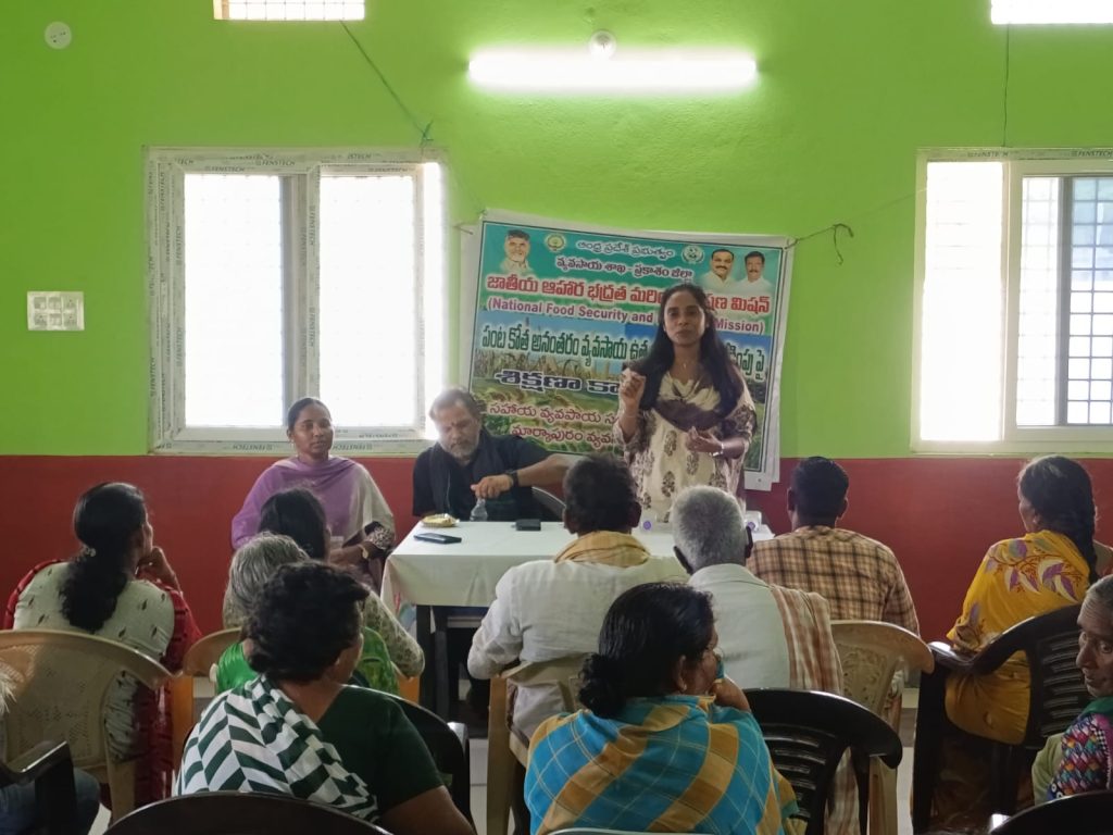 తర్లుపాడు మండలం తర్లపాడు గ్రామంలో రైతు సేవ కేంద్రం నందు వ్యవసాయ శాఖ ఆధ్వర్యంలో మహిళ రైతులకు మరియు చిరుధాన్యాల సాగు చేసే రైతులకు శిక్షణ కార్యక్రమం మండల వ్యవసాయ అధికారి పి జోష్ణ దేవి నిర్వహించడం అయినది. కార్యక్రమంలో కృషి విజ్ఞాన కేంద్రం దర్శి సబ్జెక్ట్ మేటర్ స్పెషలిస్ట్ డాక్టర్ మానస రైతులకు వివిధ చిరుధాన్యాలపంటల ప్రాసెసింగ్ మరియు విలువ ఆధారిత ప్రయోజనాలపై రైతులకు అవగాహన కల్పించారు. రైతులు నేరుగా ముడి ధాన్యాన్ని విక్రయించడం కంటే ప్రాసెసింగ్ చేసి విక్రయిస్తే అధిక ఆదాయం పొందవచ్చని తెలిపారు. మహిళ రైతులు స్వయంగా చిరు ప్రాసెసింగ్ యూనిట్లు ద్వారా వారు పండించిన ఉత్పత్తులను దళారులు లేకుండా స్వయంగా అమ్ముకోవడానికి అవకాశం ఉంటుందన్నారు. తద్వారా మహిళలు స్వయం సమృద్ధిని సాధించవచ్చని సూచించారు. ప్రాసెసింగ్ చేసిన చేసిన ఉత్పత్తులు మంచి నాణ్యత కలిగి ఎక్కువ కాలం నిల్వ ఉండి, అవసరం డిమాండ్ ఉన్న సుదూర ప్రాంతాలకి ఎగుమతి చేసుకోవడానికి వీలు కలుగుతుందని రైతులకు ఆమె వివరించారు. మహిళల అభ్యుదయానికి కేంద్ర ప్రభుత్వం మరియు రాష్ట్ర ప్రభుత్వం వారు చేపడుతున్నటువంటి వివిధ పథకాలను వినియోగించుకొని మహిళలు ఆర్థికంగా అభివృద్ధి సాధించాలని ఆమె తెలిపారు. సహాయ వ్యవసాయ సంచాలకులు డి బాలాజీ నాయక్ మాట్లాడుతూ రైతులు కందులు సెనగలు మినుములు పెసర పంటలను ప్రాసెస్ చేసి వివిధ రూపాల్లో రైతులు మార్కెట్ చేసుకోవచ్చని తద్వారా రైతులు అధిక లాభాలు సాధించవచ్చని ఆయన రైతులకు అవగాహన కల్పించారు. కార్యక్రమంలోవి ఏ ఏ ఏఈఓ దేవేంద్ర గౌడ్ ,సావిత్రి వి ఏ ఏ, గ్రామ రైతులు మరియు మహిళా రైతులు పాల్గొన్నారు
