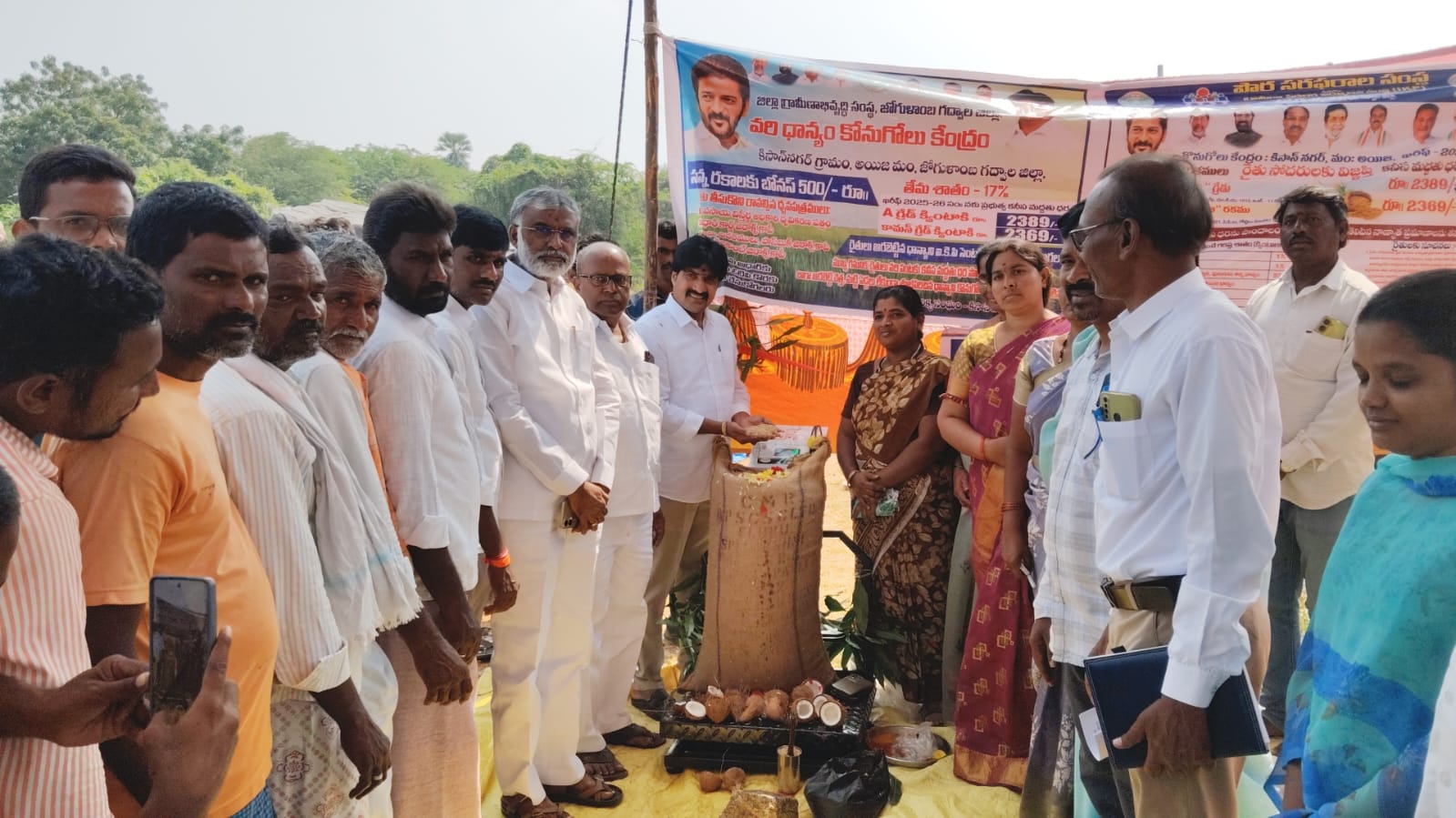 జోగులాంబ గద్వాల్ జిల్లా ఆలంపూర్ నియోజకవర్గ శాసనసభ్యులు శ్రీ విజయుడు జోగులంబ గద్వాల జిల్లా అలంపూర్ నియోజకవర్గoలో నేడు అయిజ మండల కేంద్రంలో పులికల్ & కిసాన్ నగర్ గ్రామాలలో వరి ధాన్య కొనుగోలు కేంద్రాన్ని ప్రారంభించిన *ఆలంపూర్ నియోజకవర్గ శాసనసభ్యులు శ్రీ విజయుడు,అనంతరం ఎమ్మెల్యే మాట్లాడుతూ ప్రభుత్వం ఆధ్వర్యంలో ఏర్పాటు చేసిన వరి ధాన్య కొనుగోలు కేంద్రాలను రైతులు సద్వినియోగం చేసుకోవాలని ఆయన సూచించారు, అలాగే రైతులు కష్టపడి పండించిన పంటలను మధ్య దళారులకు విక్రయించి మోసపోవద్దని, ప్రభుత్వం ఆధ్వర్యంలో ఏర్పాటు చేసిన మార్కెట్లలో పండించిన పంట ధాన్యాలను విక్రయించాలని రైతులకు ఆయన సూచించారు,,ఈ కార్యక్రమంలో బి ఆర్ ఎస్ పార్టీ నాయకులు పార్టీ శ్రేణులు కార్యకర్తలు తదితరులు పాల్గొన్నారు