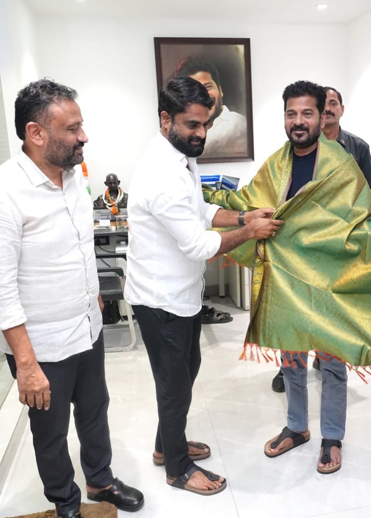 కామారెడ్డి జిల్లా నూతన కాంగ్రెస్ పార్టీ అధ్యక్షులుగా నియమితులైన ఏలే మల్లికార్జున్ , జుక్కల్ ఎమ్మెల్యే తోట లక్ష్మీ కాంతారావుతో కలిసి రాష్ట్ర గౌరవ ముఖ్యమంత్రివర్యులు శ్రీ రేవంత్ రెడ్డిని వారి నివాసంలో మర్యాదపూర్వకంగా కలిసి పుష్పగుచ్చం అందజేసి శాలువాతో సన్మానించారు..ఎంతో నమ్మకంతో తనకు ఈ బాధ్యతలు అప్పగించినందుకు ఏలే మల్లికార్జున్ ముఖ్యమంత్రికి ధన్యవాదాలు తెలియజేశారు..ఈ సందర్భంగా ముఖ్యమంత్రి రేవంత్ రెడ్డి , మంత్రి శ్రీధర్ బాబు ఎమ్మెల్యే తోట లక్ష్మీ కాంతారావు, డీసీసీ అధ్యక్షులు ఏలే మల్లికార్జున్ గార్లను అభినందించారు జిల్లాలో కాంగ్రెస్ పార్టీని బలోపేతం చేయడానికి నాయకుల్ని అందరిని కలుపుకొని పోవాలని, ప్రజా ప్రభుత్వం చేస్తున్న అభివృద్ధి కార్యక్రమాలను ప్రజలకు చేరవేయాలని, పార్టీని బూత్ స్థాయి నుంచి బలపర్చేందుకు కృషి చేయాలని, రాబోయే స్థానిక సంస్థల ఎన్నికల్లో జిల్లాలో కాంగ్రెస్ పార్టీ జెండా ఎగిరేలా కార్యాచరణ తయారు చేసుకోవాలని ముఖ్యమంత్రి నాయకులకు దిశా నిర్దేశం చేశారు..