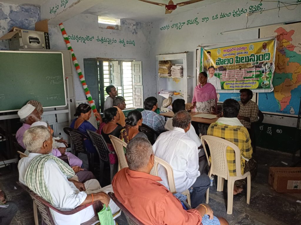 మండలం తుమ్మలచెరువు మరియు జగన్నాధపురం గ్రామాలలో మండల వ్యవసాయ అధికారి పి జోష్ణ దేవి పొలం పిలుస్తుంది కార్యక్రమం నిర్వహించారు. రైతన్న మీకోసం కార్యక్రమం తదుపరి మరల పొలం పిలుస్తుంది కార్యక్రమాన్ని ప్రారంభించినట్లు ఆమె తెలిపారు. రబి పంటలైన మినుము, మొక్కజొన్న, పొగాకు మొదలగు పంటలను ప్రతి రైతు ఈక్రాప్ నమోదు చేయించుకోవాలని తెలియజేశారు. వరి ధాన్యం కొనుగోలు కేంద్రం మీర్జా పేట రైతు సేవ కేంద్రం నందు ప్రారంభించినందున వరి ధాన్యం అమ్మదలుచుకున్న రైతులు వారి యొక్క రైతు సేవ కేంద్రం సిబ్బందిని సంప్రదించి వారి లాగిన్ లో షెడ్యూల్ చేయించుకోవలసినదిగా తెలియజేశారు లేదా రైతులే స్వయంగా వాట్సాప్ ద్వారా షెడ్యూల్ చేసుకోవాల్సిందిగా సూచించారు. వరి ధాన్యం గ్రేడ్ ఏ రకం క్వింటాకు ప్రభుత్వ మద్దతు ధర రూ 2389 గా నిర్ణయించినట్లు వారికి తెలిపారు. సాధారణ వరి క్వింటాలుకు రూ 2369 గా నిర్ణయించారని తెలిపారు. అనంతరం రైతులతో మొక్కజొన్న మరియు మినుము పొలాలను పరిశీలించారు. మొక్కజొన్న పంట సాగు చేసిన రైతులు తప్పనిసరిగా కంపెనీ వారి వద్ద నుండి అగ్రిమెంట్లు పొందాలని తెలిపారు. మొక్కజొన్న పంటలో కత్తెర పురుగు మరియు జింకు లోపాలను గుర్తించి వాటి నివారణ చర్యలు రైతులకు తెలియజేశారు. మొక్కజొన్న పంటకు ఎకరాకు 19:19:19 కేజీ చొప్పున పిచికారి చేసుకోవాలని దానితోపాటు జింక్ లోపం నివారించుకోవడానికి చిలేటెడ్ జింక్ పిచికారి చేసుకోవాలని రైతులకు సూచించారు. కత్తెర పురుగు నివారణకు ఏమామెక్టిన్ బెంజోయేట్ లేదా కోరాజిన్ పురుగుమందును పిచికారి చేయాలని సూచించారు. కార్యక్రమంలో ఏఈఓ దేవేంద్ర గౌడ్ గ్రామ వ్యవసాయ సహాయకులు మల్లికార్జున్,గ్రామ రైతులు పాల్గొన్నారు.