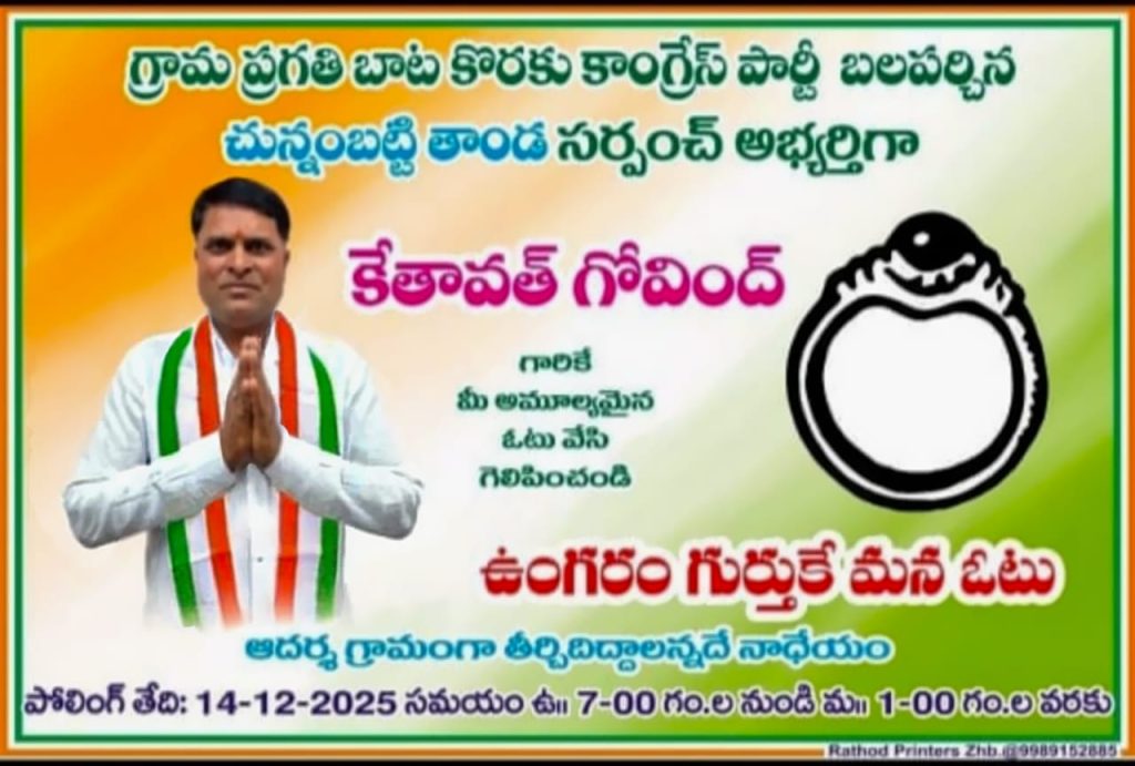 తరఫున కేతావత్ గోవింద్ నాయక్ (సన్నాఫ్ లక్ష్మణ్ నాయక్) బరిలోకి దిగారు. గ్రామ అభివృద్ధే తమ ప్రధాన లక్ష్యమని, తండా ప్రజలకు పారదర్శక పాలన అందించేందుకు తాను కట్టుబడి ఉన్నానని గోవింద్ నాయక్ తెలిపారు.ప్రాథమిక సౌకర్యాల విస్తరణ, తాగునీటి సమస్యల పరిష్కారం, రహదారి సదుపాయాల మెరుగుదల, గ్రామంలో యువతకు ఉపాధి అవకాశాలు కల్పించడం వంటి పలు అంశాలను ప్రాధాన్యంగా తీసుకుని ముందుకు సాగుతానని ఆయన వెల్లడించారు.గ్రామస్థులు గోవింద్ నాయక్కు మంచి మద్దతు తెలియజేస్తున్నారు. రాబోయే సర్పంచ్ ఎన్నికల్లో కాంగ్రెస్ అభ్యర్థి గోవింద్ నాయక్ విజయాన్ని సాధించాలని స్థానిక నాయకులు, కార్యకర్తలు ఆకాంక్షిస్తున్నారు.