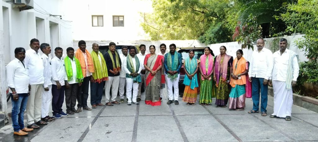 మొదటి విడత సర్పంచ్ ఎన్నికల్లో భాగంగా కొత్తపల్లి గ్రామ సర్పంచ్ గా బిఆర్ఎస్ పార్టీ నుండి గెలుపొందిన కుమ్మరి. పద్మ జగన్, వార్డ్ సభ్యులు మాజీ డిప్యూటీ స్పీకర్, బిఆర్ఎస్ పార్టీ జిల్లా అధ్యక్షురాలు మాజీ ఎమ్మెల్యే పద్మ దేవేందర్ రెడ్డిని సోమవారం వారి నివాసం హైదరాబాద్ కొంపల్లిలో మర్యాదపూర్వకంగాకలిశారు.ఈ సందర్బంగా పద్మ దేవేందర్ రెడ్డి కొత్తపల్లి గ్రామ సర్పంచ్ కుమ్మరి.పద్మ జగన్ ను వార్డ్ సభ్యులను శాలువాతో సన్మానించి శుభాకాంక్షలు తెలిపి అభినందించారు.