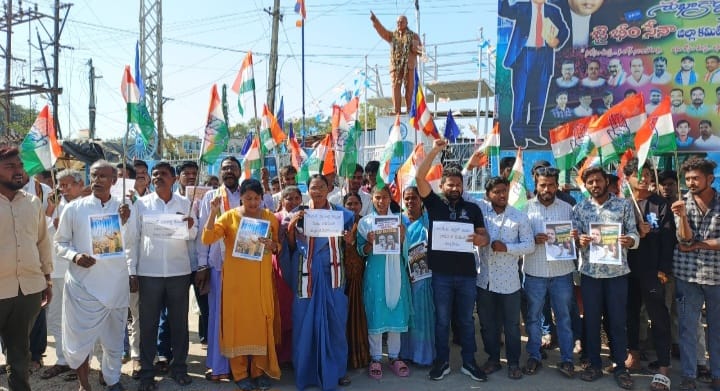 ఆసిఫాబాద్ :నేషనల్ హెరాల్డ్ కేసులో కాంగ్రెస్ పార్టీ అగ్ర నేతలు సోనియా గాంధీ, రాహుల్ గాంధీలపై ఈడీ కేసులను కోర్టు తప్పు పట్టిన నేపథ్యంలో, బీజేపీ చేసిన అరాచకాలపై కుమురంభీమ్ ఆసిఫాబాద్ జిల్లా కేంద్రంలో కాంగ్రెస్ పార్టీ శ్రేణులు నిరసన తెలిపారు.డీసీసీ అధ్యక్షురాలు ఆత్రం సుగుణక్క ఆధ్వర్యంలో ఆసిఫాబాద్ పట్టణంలోని డాక్టర్ బి.ఆర్ అంబేద్కర్ చౌరస్తాలో రహదారిపై బైటయించి నిరసన తెలిపారు.ఈ సందర్భంగా సుగుణక్క మాట్లాడుతూ.. నేషనల్ హెరాల్డ్ కేసులో నిజం గెలిచిందని, కుట్ర ఓడిపోయిందని, రాజకీయ కక్షతో ఈడీని వాడుకున్న బీజేపీకి ఇది గుణపాఠమని, సోనియా గాంధీ, రాహుల్ గాంధీ నిర్దోషులని, ప్రజాస్వామ్యం గెలిచిందని తెలిపారు. కేంద్రంలోని బీజేపీ చేస్తున్న అరాచకాలు ఓడిపోయాయని, ప్రజాస్వామ్య సంస్థల దుర్వినియోగాన్ని ఖండిస్తున్నామని అన్నారు.పదేళ్లుగా గాంధీ కుటుంబాన్ని అవమానించిన బీజేపీ ఈ రోజు దేశ ప్రజలకు సమాధానం చెప్పాలి.మా నాయకుడు రాహుల్ గాంధీ నిరుద్యోగంపై మాట్లాడితే కేసులు,రైతుల కోసం నిలబడితే ఈడీ,ధరల పెరుగుదలపై ప్రశ్నిస్తే కేసులు.ఇదేనా ప్రజాస్వామ్యం? ఇదేనా బీజేపీ దేశానికి ఇచ్చే పాలన? ఈ రోజు మేము అంబేద్కర్ విగ్రహం ముందు ధర్నా చేయడం ఒక్క మా నాయకుల కోసమే కాదు.రాజ్యాంగాన్ని కాపాడుకోవడం కోసం.ప్రజాస్వామ్యాన్ని రక్షించుకోవడం కోసం.కాంగ్రెస్ పార్టీ భయపడే పార్టీ కాదు..పోరాడే పార్టీ..జవహర్లాల్ నెహ్రూ గారి ఆశయాలతో,ఇందిరాగాంధీ గారి ధైర్యంతో,రాజీవ్ గాంధీ గారి త్యాగంతో,రాహుల్ గాంధీ గారి పోరాటంతో మేము ముందుకు సాగుతున్నాం.బీజేపీ ఎంత అణచివేయాలని చూసినా నిజాన్ని ఆపలేరు,న్యాయాన్ని ఆపలేరు,కాంగ్రెస్ పార్టీని ఆపలేరని పేర్కొన్నారు.ఈ నిరసన కార్యక్రమంలో అన్ని మండలాలకు చెందిన నాయకులు, కార్యకర్తలు, కాంగ్రెస్ పార్టీ అనుబంధ సంఘాల నాయకులు పాల్గొన్నారు.డీసీసీ కార్యాలయం, కుమురంభీమ్ ఆసిఫాబాద్