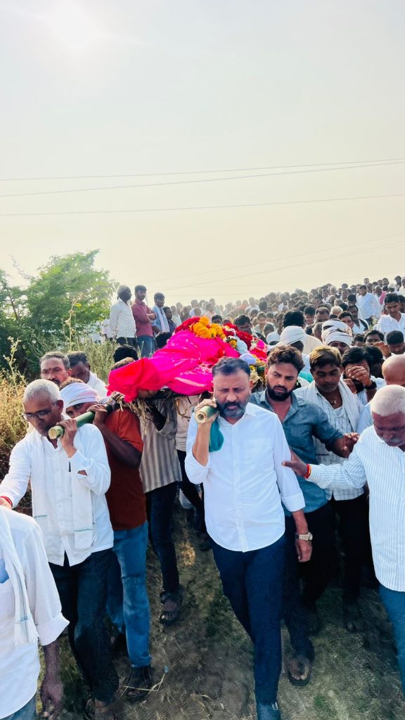 ఈ విషయం తెలుసుకున్న జుక్కల్ ఎమ్మెల్యే తోట లక్ష్మీ కాంతారావు సోమవారం రోజు వారి గ్రామానికి వెళ్లి, శివాజీ రామరావు పటేల్ భౌతికకాయానికి పూలమాల వేసి నివాళులు అర్పించారు..శివాజీ రామరావు పటేల్ గారి పవిత్ర ఆత్మకు శాంతి చేకూరాలని భగవంతుడిని ప్రార్థించారు..శోకసంద్రంలో మునిగిన కుటుంబ సభ్యులను ఎమ్మెల్యే గారు ఓదార్చారు..అనంతరం అంత్యక్రియలలో పాల్గొని పాడె మోసి అశృనయనాలతో వీడ్కోలు పలికారు..ఈ సందర్భంగా ఎమ్మెల్యే మాట్లాడుతూ..శివాజీ రామ రావు పటేల్ ఆకస్మిక మరణం వారి కుటుంబానికి మాత్రమే కాకుండా కాంగ్రెస్ పార్టీకి కూడా తీరని లోటని అన్నారు..గ్రామ అభివృద్ధి కోసం నిరంతరం కృషి చేసిన ఒక నిబద్ధత,నిజాయితీ గల నాయకుడిని పార్టీ కోల్పోయిందని ఆవేదన వ్యక్తం చేశారు..పార్టీకి వారు అందించిన సేవలు మరువలేనివి అని,ఒక బలమైన నాయకుడిని కోల్పోవడం పార్టీ శ్రేణులకు దుఃఖాన్ని కలిగిస్తున్నదని భావోద్వేగానికి గురయ్యారు..