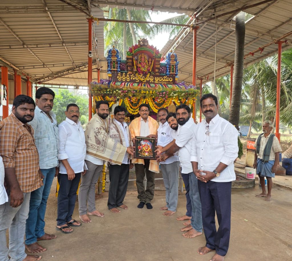 డాక్టర్ బి.ఆర్ అంబేద్కర్ కోనసీమ జిల్లా ముమ్మిడివరం మండలం సిహెచ్ గున్నేపల్లి గ్రామంలో వేంచేసి ఉన్న శ్రీ సత్తమ్మ తల్లి అమ్మ వారి ని వాడపల్లి దేవస్థానం చైర్మన్ ముదునూరి వెంకట కృష్ణరాజు శ్రీ సతైమ్మతల్లి దర్శించుకున్నారు అనంతరం ఆలయ కమిటీ సభ్యులు గ్రామ ప్రజలు సత్కరించి అమ్మవారి చిత్రపటం అందజేశారు ఈ కార్యక్రమంలో గొల్ల కోటి దొరబాబు, గాలి దేవర బుల్లి సుంకర శ్రీనివాస్ ,గుమ్మల రాము గాలి దేవర శ్రీరామ్, బోనం కృష్ణ ,మేకలు సతీష్ కుమార్, బాలు , తదుపరులు పాల్గొన్నారు