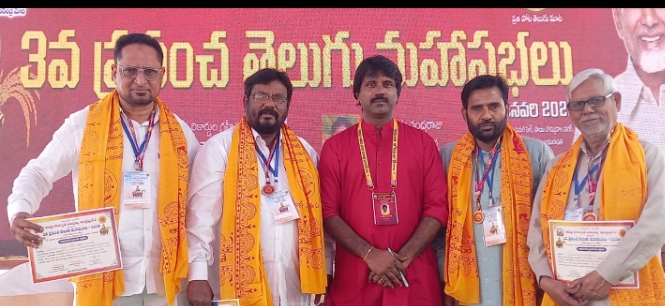 ప్రపంచానికి వెలుగును చూపిన భాష తెలుగు అని, ఆంగ్ల మాధ్యమాలు ఎన్ని ఉన్నా తెలుగు భాష గొప్పతనాన్ని ఎవ్వరూ తగ్గించలేరని ఆంధ్రప్రదేశ్ ముఖ్యమంత్రి నారా చంద్రబాబు నాయుడు స్పష్టం చేశారు.ఆంధ్రప్రదేశ్ రాజధాని ప్రాంతమైన అమరావతి – గుంటూరు జిల్లాలో ఆంధ్ర సారస్వత పరిషత్ ఆధ్వర్యంలో, మాస్కో డాక్టర్ గజల్ శ్రీనివాస్ నిర్వహణలో జనవరి 3, 4, 5 తేదీలలో నిర్వహించిన మూడవ ప్రపంచ తెలుగు మహాసభలు అంగరంగ వైభవంగా విజయవంతమయ్యాయి.మహాసభల చివరి రోజు సోమవారం మధ్యాహ్నం 12 గంటలకు గజల్ శ్రీనివాస్ అధ్యక్షతన నిర్వహించిన అభినందన సభకు ముఖ్య అతిథిగా హాజరైన ముఖ్యమంత్రి చంద్రబాబు నాయుడు మాట్లాడుతూ,ప్రపంచ తెలుగు మహాసభలు ఆంధ్రప్రదేశ్కు గర్వకారణమని, ఈ మహాసభలకు 40 దేశాల నుంచి తెలుగువారు పాల్గొనడం అభినందనీయం అని అన్నారు.తెలుగు నిరంతరం వెలుగుతూనే ఉంటుంది “దేశభాషలందు తెలుగు లెస్స” అన్న శ్రీకృష్ణదేవరాయల మాటలు నేటికీ సత్యమని, పరభాషా పాలకులు పాలించినా తెలుగు భాషపై ఎలాంటి ప్రభావం పడలేదని ముఖ్యమంత్రి పేర్కొన్నారు.అన్నమయ్య, నన్నయ్య, తిక్కన, పోతన, ఎర్రప్రగడ, శ్రీనాథుడు, కవి సార్వభౌములు, గిడుగు రామ్మూర్తి వంటి మహానుభావులు తెలుగు బ్రతికేందుకు, తెలుగు విలువలు పెంపొందేందుకు చేసిన కృషిని సీఎం గుర్తు చేశారు.ప్రభుత్వం కీలక నిర్ణయాలు ప్రభుత్వ పాఠశాలలతో పాటు ప్రైవేటు పాఠశాలల్లోనూ తెలుగు వ్యాకరణ బోధన తప్పనిసరి చేసేలా ఆదేశాలు జారీ చేస్తానని, అలాగే సంగీత కళాశాలలు ఏర్పాటు చేస్తానని చంద్రబాబు నాయుడు హామీ ఇచ్చారు.తెలుగు మాట్లాడే రెండు రాష్ట్రాలు ఐక్యతతో కలిసి ముందుకు సాగాలని పిలుపునిచ్చారు.భద్రాద్రి కొత్తగూడెం కవుల విశేష పాల్గొనడం ఈ మహాసభలకు భద్రాద్రి కొత్తగూడెం జిల్లా, కొత్తగూడ మండలం రామవరం ప్రాంతానికి చెందిన అభ్యుదయ సామాజిక కవులు తూముల శ్రీనివాస్, మహమ్మద్ ముస్తఫా, సయ్యద్ అబ్దుల్ నజీర్లు పాల్గొన్నారు. జనవరి 6న శ్రీ జాషువా – శ్రీ కరుణ – శ్రీ వేదికపై నిర్వహించిన “తెలుగు తల్లికి సహస్ర కవితా నీరాజనం” కవి సమ్మేళనంలో పాల్గొని,గజల్ కవి గజల్ రాజేష్, డాక్టర్ ఎస్.ఆర్.ఎస్. కొల్లూరి, శ్రీ కలిమి శ్రీ సంచాలకులుగా నిర్వహించిన సభలో కవులు సబికుల కరతాళ ధ్వనుల మధ్య ప్రశంసలు అందుకున్నారు.