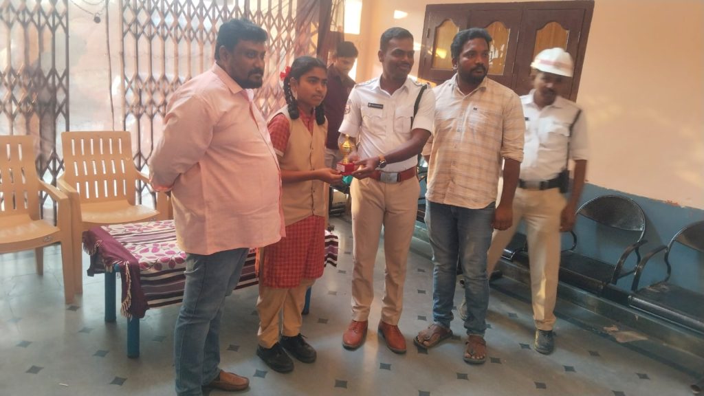 రోడ్డు భద్రతపై విద్యార్థులకు అవగాహన:- ట్రాఫిక్ ఎస్ఐ బాలచంద్రుడు గద్వాల పట్టణం “విద్యతో పాటు విద్యార్థుల్లో జీవన నైపుణ్యాలు, భద్రతా అవగాహన పెంపొందించడం కూడా అత్యంత అవసరం అని ట్రాఫిక్ ఎస్ఐ బాలచంద్రుడు అన్నారు.గురువారం జిల్లా కేంద్రంలోని శ్రీ చైతన్య స్కూల్ లో ట్రాఫిక్ పోలీస్ వారి ఆధ్వర్యంలో ‘అరైవ్ అండ్ అలైవ్’ రోడ్ సేఫ్టీ అవగాహన కార్యక్రమం ఘనంగా నిర్వహించారు.ఈ కార్యక్రమానికి ముఖ్య అతిథులుగా ట్రాఫిక్ ఎస్ఐ బాలచంద్రుడు హాజరయ్యారు. ఈ సందర్భంగా ట్రాఫిక్ ఎస్ఐ బాలచంద్రుడు మాట్లాడుతూ…. విద్యార్థులకు రోడ్డు భద్రతకు సంబంధించిన నియమాలు, జాగ్రత్తలపై విస్తృతంగా అవగాహన కల్పించారు. రోడ్డు ప్రమాదాలకు ప్రధాన కారణాలైన అతి వేగం, నిర్లక్ష్యం, మద్యం సేవించి వాహనం నడపడం, మొబైల్ ఫోన్ ఉపయోగం వంటి అంశాలను వారు వివరించారు.ద్విచక్ర వాహనదారులు తప్పనిసరిగా హెల్మెట్ ధరించాలి,కార్ ప్రయాణికులు సీట్బెల్ట్ తప్పనిసరిగా వినియోగించాలి, ట్రాఫిక్ సిగ్నల్స్ను గౌరవించాలి అని స్పష్టం చేశారు. జీబ్రా క్రాసింగ్ వినియోగం, రోడ్డు దాటే సమయంలో ఇరు వైపులా చూసి దాటడం, పిల్లలు రోడ్డుపై ఆడకూడదనే జాగ్రత్తలు తీసుకోవాలని సూచించారు. ప్రమాదం జరిగినప్పుడు వెంటనే 100 / 112 కు కాల్ చేయడం, బాధితుడికి ప్రాథమిక సహాయం అందించడం ఎంత ముఖ్యమో వివరించారు.“విద్యతో పాటు విద్యార్థుల్లో జీవన నైపుణ్యాలు, భద్రతా అవగాహన పెంపొందించడం కూడా అత్యంత అవసరం మరియు చిన్న వయసులోనే రోడ్డు భద్రతపై అవగాహన కల్పిస్తే, వారు జీవితాంతం ట్రాఫిక్ నియమాలను గౌరవించే బాధ్యతాయుత పౌరులుగా మారుతారు. ఈ తరహా అవగాహన కార్యక్రమాలను భవిష్యత్తులో కూడా నిరంతరం కొనసాగిస్తాం” అని తెలిపారు.విద్యార్థులు చిన్న వయసు నుంచే ట్రాఫిక్ నియమాలు పాటిస్తే భవిష్యత్తులో ప్రమాదాలు గణనీయంగా తగ్గుతాయని, “సురక్షితంగా వెళ్లి సురక్షితంగా తిరిగి రావడం ప్రతి ఒక్కరి బాధ్యత” అని అయన ఈ సందర్భంగా పేర్కొన్నారు. అనంతరం విద్యార్థులచే వ్యాసరచన పోటీ నిర్వహించి,ఉత్తమ వ్యాసరచన రాసిన విద్యార్థులకు బహుమతులు అందజేశారు. ఈ కార్యక్రమంలో టౌన్ ఎస్సై 2 జంగిర్,తదితరులు పాల్గొన్నారు.