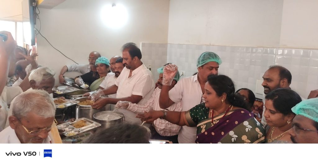 డాక్టర్ బి.ఆర్ అంబేద్కర్ కోనసీమ జిల్లా ముమ్మిడివరం నగర టిడిపి అధ్యక్షులు కట్ట సత్తిబాబు ఆధ్వర్యంలో ప్రభుత్వ విప్ మరియు ముమ్మడివరం శాసనసభ్యులు దాట్ల బుచ్చిబాబు ముఖ్యఅతిథిగా పాల్గొని ముమ్మిడివరం గవర్నమెంట్ హాస్పిటల్ లో రోగులకు పాలు బ్రెడ్ ఫ్రూట్స్ అందజేశారు. తదుపరి యువనేత ఐటి మరియు విద్యాశాఖ మంత్రి నారా లోకేష్ వారి జన్మదిన సందర్భంగా ముమ్మిడివరం బల్లగెటు సెంటర్లో ఉన్న అన్న క్యాంటీన్లో ఉచితంగా పేదలకు భోజన సదుపాయం ఏర్పాటు చేసిన ప్రభుత్వ విప్ మరియు ముమ్మిడివరం శాసనసభ్యులు దాట్ల బుచ్చిబాబు నిర్వహించారు ఈ సందర్భంగా జన్మదిన ప్రత్యేకంగా స్పెషల్ వెజిటబుల్ బిర్యానీ తో పాటు స్వీట్ ఐటమ్స్ తయారు చేయించి పేదలకు ఆహారాన్ని అందించారు.