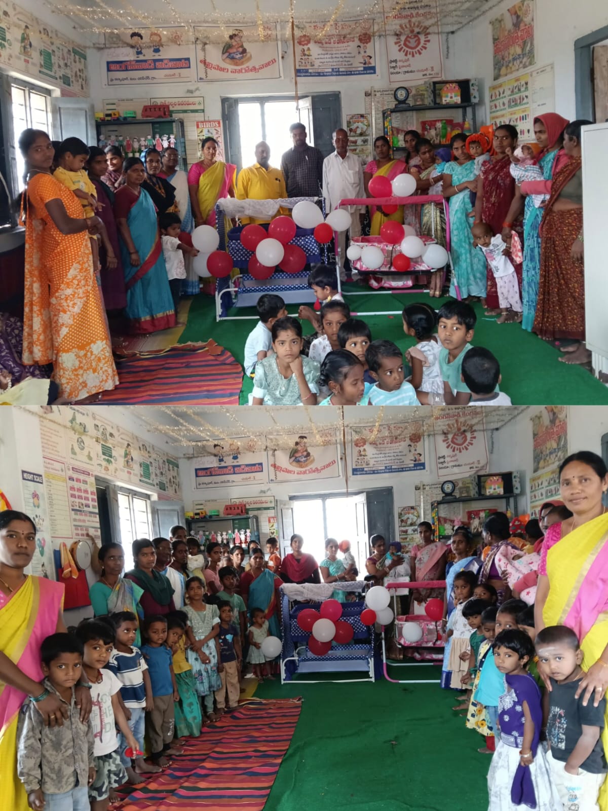 మెదక్ జిల్లా చిలిపి చెడు మండలం చండూరు అంగన్వాడి కేంద్రంలో భేటీ దినోత్సవం కార్యక్రమం నిర్వహించారు ఈ కార్యక్రమంలో గ్రామ పంచాయతీ సెక్రెటరీ జితేందర్ మరియు గ్రామ సర్పంచ్ టం టం శేషాద్రి మరియు గ్రామ ఉపసర్పంచ్ మన్నె వెంకటేశం గ్రామ సర్పంచ్ మాట్లాడుతూ గ్రామంలోని ప్రతి ఒక్కరూ తమ చిన్నారులకు అంగన్వాడి కేంద్రానికి పంపించాలని అన్నారు చిన్నారులకు అంగన్వాడి కేంద్రానికి పంపించడంతో విద్యతోపాటు శారీరక మానసిక దృఢత్వం పెరుగుతుందని అన్నారు గర్భిణీలు బాలింతలు అంగన్వాడి కేంద్రంలో అందించే పౌష్టిక ఆహారాన్ని స్వీకరించాలని తెలియజేశారు అంగన్వాడీ కేంద్రంలో ఇచ్చే సలహాలు సూచనలు పాటించాలని అన్నారు ఈ కార్యక్రమంలో గర్భిణీలు బాలింతలు చిన్నారులు మరియు అంగన్వాడీ టీచర్స్ శశికళ యాదమ్మ అంగన్వాడి హెల్పర్స్ లక్ష్మి బాలమ్మ మరియు ఆశా వర్కర్ యాదమ్మ తదితరులు ఈ కార్యక్రమంలో పాల్గొన్నారు బాలిక దినోత్సవం కార్యక్రమం ఘనంగా నిర్వహించారు కార్యక్రమంలో భాగంగా చిన్నారులను గ్రామ సర్పంచ్ తొట్టెలలో వేసి చిన్నారులను అలరించారు చిన్నపిల్లలకు పౌష్టికాహారం తోనే పిల్లలు దృఢంగా ఉంటారని తెలియజేశారు ఈ కార్యక్రమంలో చిన్నారులు పిల్లల యొక్క తల్లులు తదితరులు ఈ కార్యక్రమంలో పాల్గొన్నారు