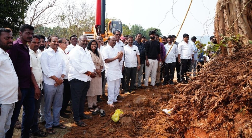రాష్ట్ర ప్రభుత్వం చేపట్టిన మిషన్ పునర్వనంలో భాగంగా స్పీకర్ అయ్యన్న పాత్రుడు భారీ వృక్షాన్ని నాటారు. అనకాపల్లి-అచ్యుతాపురం రహదారి విస్తరణలో తొలగించిన భారీ వృక్షాలను క్రేన్ సహాయంతో ఆవ వద్దకు తరలించారు.ఈ నెల 30,31 తేదీల్లో జరిగే అనకాపల్లి ఉత్సవ్ ను విజయవంతం చేయాలని స్పీకర్ అయ్యన్న పిలుపునిచ్చారు.భారీ వృక్షాలకు తిరిగి ప్రాణం పోస్తున్న ఎమ్మెల్యే సుందరపుని అయ్యన్న అభినందించారు.