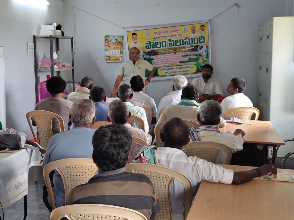 తర్లపాడు మండలంలోని గానుగపెంట మరియు రాగసముద్రం గ్రామాలలో పొలం పిలుస్తుంది కార్యక్రమం ఏడిఏ మార్కాపురం బాలాజీ నాయక్ నిర్వహించారు. కార్యక్రమంలో రైతుల ఉద్దేశించి ఆయన మాట్లాడారు. ఏపీ ఎఫ్ ఆర్ ఆంధ్రప్రదేశ్ ఫార్మర్ రిజిస్ట్రేషన్ నందు ప్రతి ఒక్క రైతు యూనిక్ ఐడి నెంబర్ కోసం రైతు సేవ కేంద్రం సిబ్బందిని సంప్రదించి నమోదు చేయించుకోవాలని తెలియజేశారు. యూనిక్ ఐడి నెంబర్ లేని ఎడల కేంద్ర ప్రభుత్వం వారు అందజేసే పథకాలకు అర్హత కోల్పోతారని వారికి తెలిపారు. పొలం ఉన్న ప్రతి ఒక్క రైతు కూడా ఏపీ ఎఫ్ ఆర్ లో నమోదు చేయించుకొని యూనిక్ ఐడి నెంబర్ పొందాలని తెలియజేశారు. కంది పంటకు కేంద్ర ప్రభుత్వం కనీస మద్దతు ధర రూపాయలు 8000 ఇస్తున్నందున రైతులు వారు సాగుచేసిన కంది పంటను రైతు సేవా కేంద్రాలలో విక్రయించాలని తెలిపారు. రబి పంటలు ఫిబ్రవరి 20 లోపు రైతులందరూ ఈక్రాప్ నమోదు చేయించుకోవాలని ఆయన తెలిపారు. ఈ క్రాప్ నమోదు చేసే రైతు సేవ కేంద్రం సిబ్బందికి రైతులు తప్పనిసరిగా సహకరించాలని సూచించారు. కార్యక్రమంలో ఏఈఓ దేవేంద్ర గౌడ్, విహెచ్ఎ సాయిరాం, రైతులు పాల్గొన్నారు.
