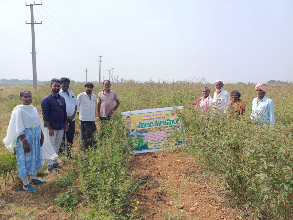 తర్లుపాడు మండలంలోని పోతలపాడు కందల్లపల్లి గ్రామాలలో పొలం పిలుస్తోంది కార్యక్రమం నిర్వహించారు.కంది , మినుము పంటల దిగుబడులు ఆశాజనకంగా ఉన్నట్లు రైతులు తెలియజేశారు. వ్యాపారులు గ్రామాలలో క్వింటా రూ 8000 – 8200 వరకు కొనటానికి సిద్ధంగా ఉన్నారని వారు తెలిపారు. మండల వ్యవసాయ అధికారి మాట్లాడుతూ బయట మార్కెట్ ధర తక్కువ ఉన్నప్పుడు , రైతు సేవ కేంద్రాలలో ఏర్పాటు చేయనున్న కొనుగోలు కేంద్రాలలో అమ్ముకోవచ్చని చెప్పారు. ప్రభుత్వ మద్దతు ధరకు అమ్ముకోవాలంటే తప్పనిసరిగా రైతు సేవ కేంద్రం సిబ్బంది ద్వారా ఈపంట నమోదు సీఎం ఏ పిపి లో రిజిస్ట్రేషన్ చేయించాలని సూచించారు. ఆండ్రాయిడ్ ఫోన్లు ఉన్న రైతులు ఏపీ ఏఐఎంఎస్ రైతుయాప్ ను డౌన్లోడ్ చేసుకుని, స్వయంగా ఈపంట నమోదు, మార్కెట్ ధరలు తెలుసుకునే అవకాశం ఉన్నట్లు రైతులకు తెలిపారు. కొంతమంది రైతులతో యాప్ ను డౌన్లోడ్ చేయించారు. రైతులతో కలిసి కోతకు సిద్ధంగా ఉన్న కంది , దోస పంట సాగుచేసిన పొలాలను పరిశీలించారు. కార్యక్రమంలో ఏఈఓ దేవేంద్ర గౌడ్, వీహె చ్ ఏ సాయిరాం, రైతులు పాల్గొన్నారు.