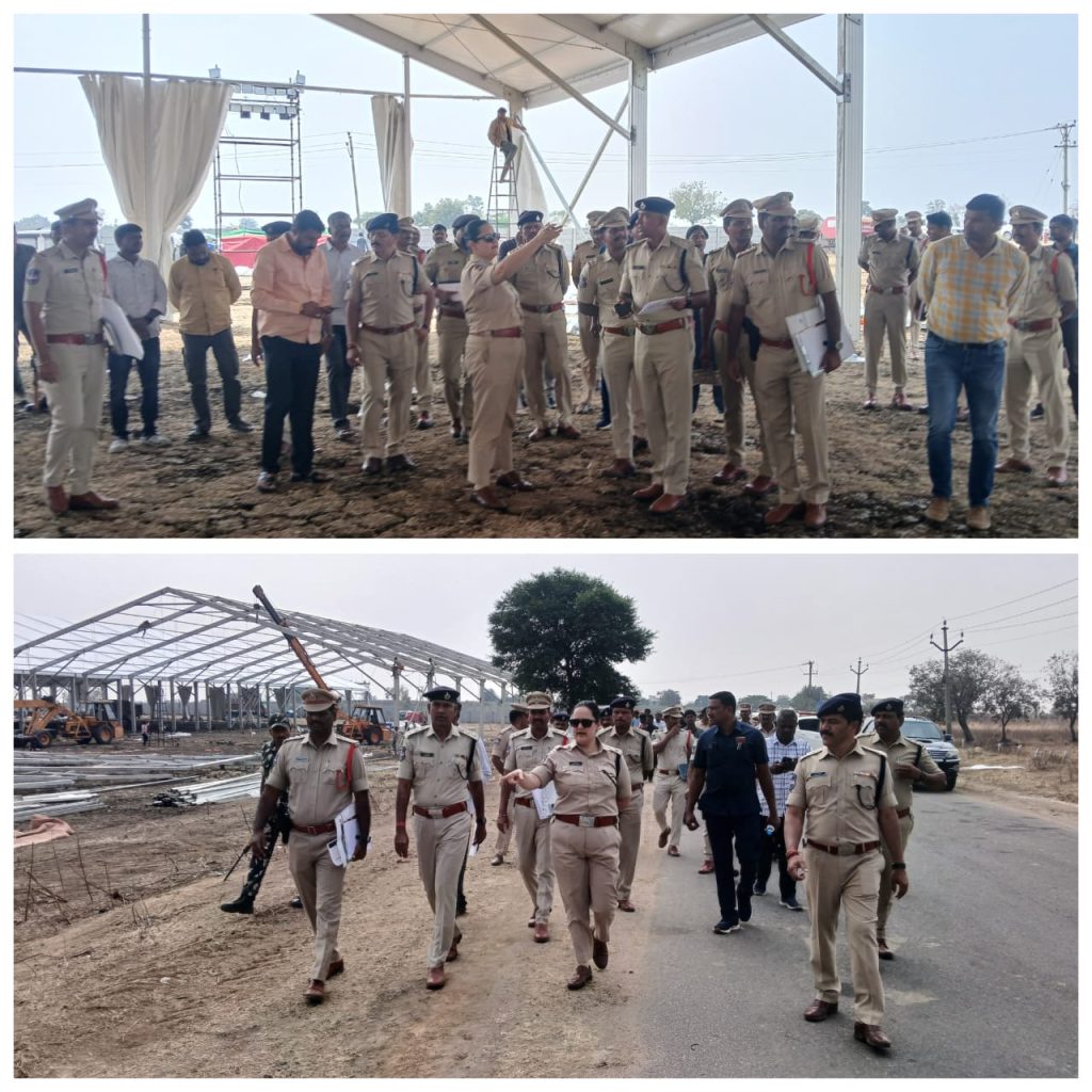 ఈ నెల 07.02.2026 న పరిగి పోలీస్ స్టేషన్ పరిధిలోని నారాయణపూర్ గ్రామం లో నిర్వహించనున్న గౌరవ తెలంగాణ రాష్ట్ర ముఖ్యమంత్రి గారి భారీ బహిరంగ సభను పురస్కరించుకుని, జిల్లా ఎస్పీ శ్రీమతి స్నేహ మెహ్ర, IPS నేడు సభా ప్రాంగణాన్ని మరియు పరిసర ప్రాంతాలను క్షేత్రస్థాయిలో విస్తృతంగా పరిశీలించారు. ఈ సందర్భంగా ఎస్పీ సభ నిర్వహించనున్న స్థలం, ప్రముఖులు కూర్చునే డి-రింగ్ భద్రతా ప్రాంతం, ప్రజలు కూర్చునే విభాగాలు, ప్రవేశ–నిష్క్రమణ మార్గాలు, అత్యవసర వాహనాల రాకపోకల మార్గాలను క్షుణ్ణంగా తనిఖీ చేశారు. ముఖ్యమంత్రి గారి రాక కోసం సిద్ధం చేస్తున్న హెలిప్యాడ్ నిర్మాణ పనులను పరిశీలించి, భద్రతా ప్రమాణాల్లో ఎలాంటి లోపాలు లేకుండా చర్యలు తీసుకోవాలని అధికారులను ఆదేశించారు. అనంతరం సభకు హాజరయ్యే అశేష జనవాహినిని దృష్టిలో ఉంచుకుని వాహనాల పార్కింగ్ ఏర్పాట్లు, ట్రాఫిక్ మళ్లింపు మార్గాలు, పాదచారుల సౌకర్యాలు, బారికేడింగ్ ఏర్పాట్లను పర్యవేక్షించారు. అత్యవసర పరిస్థితులను ఎదుర్కొనేందుకు క్విక్ రెస్పాన్స్ టీమ్స్, అంబులెన్సులు, ఫైర్ సర్వీస్ సిబ్బంది అందుబాటులో ఉండేలా ముందస్తు చర్యలు తీసుకోవాలని సూచించారు. ఈ సందర్భంగా బందోబస్తు స్కీమ్‌పై స్థానిక పోలీస్ అధికారులు మరియు ఇతర విభాగాలతో సమీక్ష నిర్వహించి, శాంతిభద్రతల పరిరక్షణ, గుంపు నియంత్రణ వంటి అంశాలపై పలు కీలక సూచనలు చేశారు. ప్రతి అధికారి పూర్తి అప్రమత్తతతో విధులు నిర్వహించాలని, ప్రజలకు ఎలాంటి అసౌకర్యం కలగకుండా అన్ని శాఖలతో సమన్వయంతో కలసి పని చేయాలని స్పష్టం చేశారు. గౌరవ ముఖ్యమంత్రి గారి పర్యటన ప్రశాంతంగా, సురక్షితంగా, విజయవంతంగా ముగిసేలా పక్కా ప్రణాళికతో ముందుకు సాగాలని జిల్లా ఎస్పీ అధికారులకు దిశానిర్దేశం చేశారు. ఈ కార్యక్రమంలో జిల్లా అదనపు ఎస్పీ B. రాములు నాయక్, పరిగి డీఎస్పీ శ్రీనివాస్, తాండూర్ డీఎస్పీ నర్సింగ్ యాదయ్య, DCRB డీఎస్పీ జానయ్య, డీటీసీ డీఎస్పీ శ్రీనివాసులు, ఏ.ఆర్ డీఎస్పీ వీరేష్, సీఐలు, ఆర్‌ఐలు, ఎస్‌ఐలు, ఆర్‌ఎస్‌ఐలు మరియు పోలీస్ సిబ్బంది తదితరులు పాల్గొన్నారు.