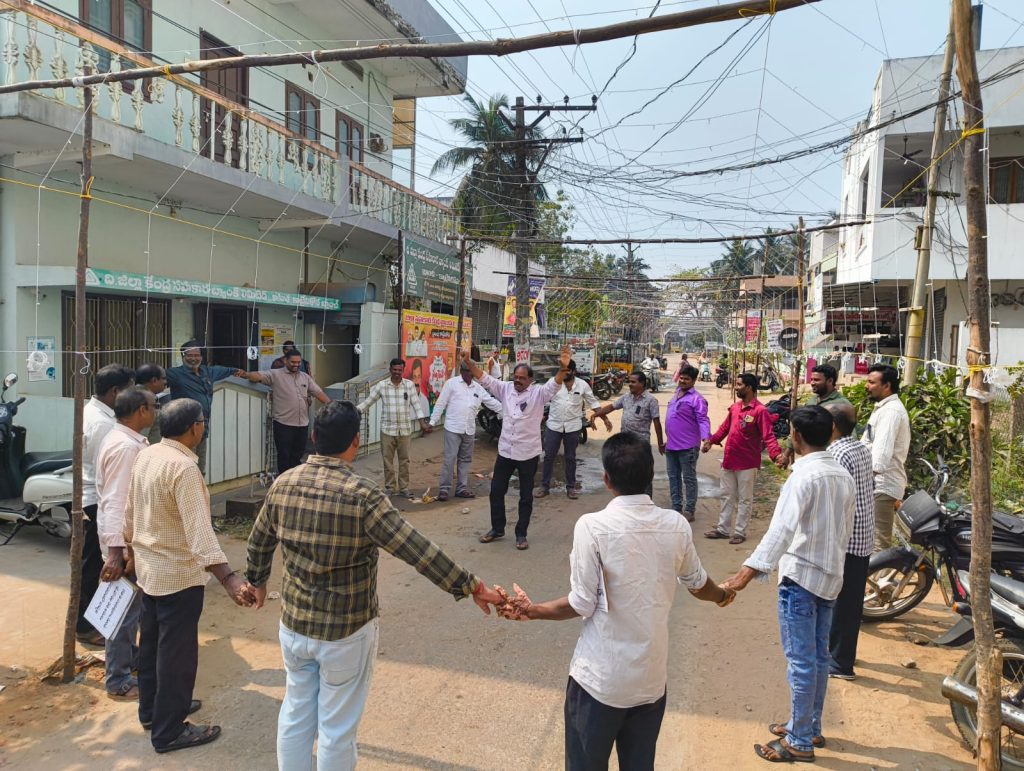 కాట్రేనికోన మండలంలోని ఏడు సహకార సంఘాల ఉద్యోగులు మంగళవారం కాట్రేనికోన డిసిసిబి వద్ద ఆందోళన చేపట్టారు. మానవహారం నిర్వహించారు. తమ న్యాయమైన డిమాండ్ల సాధనకు ప్రభుత్వం స్పందించాలని ఈ సందర్భంగా సహకార సంఘ ఉద్యోగుల జిల్లా అధ్యక్షులు య ర్రం శెట్టి రామచంద్రరావు, ఆధ్వర్యంలోఈ రోజు అనగా రెండవ రోజు సమ్మె లో భాగంగా కాట్రేనికోన బ్రాంచ్ వద్ద మండలం లో సహకార సంఘాల సిబ్బంది మానవహారం నిర్వహించి. బ్రాంచ్ వద్ద నిరసన వ్యక్తం చేయడం జరిగింది. ఈ కార్యక్రమం లో జిల్లా అద్యక్షుడు యర్రంశెట్టి రామచంద్రరావు, మరియు అప్పారి సత్య ప్రేమేశ్వరరావు, కోటిపల్లి శ్రీ రామ వర ప్రసాద్, కోటిపల్లి సీతారామారావు, గుత్తుల వెంకట శ్రీనివాస్, విత్తనాల శంకర్, గుబ్బల నాగేంద్ర కుమార్, మరియు, యర్రంశెట్టి నాని,పీ. వరహాల రాజు, శరత్,సురేష్, నాగ భూషణం, సత్తిబాబు, వర్మ, సుబ్రహ్మణ్యం, కిరణ్, వెంకటేష్ తదితరులు పాల్గొన్నారు