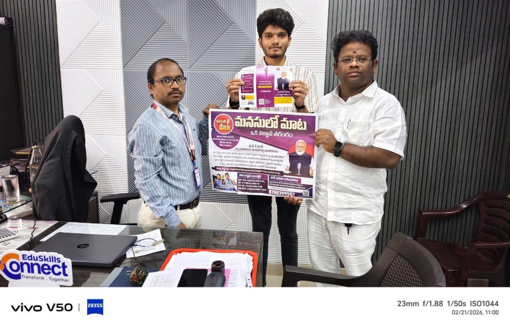 జనం న్యూస్ ఫిబ్రవరి 21 ముమ్మిడివరం ప్రతినిధి మాననీయ ప్రధాన మంత్రి శ్రీ నరేంద్ర మోదీ నెలవారీ రేడియో ప్రసంగం “మన్ కీ బాత్” కార్యక్రమంలో భాగంగా 22 ఫిబ్రవరి 2026 తేదీన ఉదయం 11 గంటలకు మన ప్రధానమంత్రి దేశ విద్యార్థులను ఉద్దేశించి మాట్లాడుతారు. ఈ సందర్భంగా పార్టీ నాయకులు, ప్రజాప్రతినిధులు, కార్యకర్తలు, యువత మరియు స్థానిక ప్రజలు మాత్రమే కాకుండా, పాఠశాల, కళాశాల యాజమాన్యం ఈ కార్యక్రమాన్నీ తమ విద్యార్థులకు కూడా వీక్షించేలా చేయాలని, ప్రధానమంత్రి సందేశానంతరం వారి చేసిన సందేశాలను ప్రశ్నలలుగా రూపొందించి ఒక ప్రశ్నాపత్రాన్ని విద్యార్థులకు ఇచ్చి సమాధానాలు సేకరించి వారి నైపుణ్యాన్ని బట్టి బహుమతులను కూడా ఇవ్వడం జరుగుతుంది అని తెలియచేయడంతో, పాఠశాల మరియు కళాశాల హెడ్మాస్టర్లు,ప్రిన్సిపాల్ మరియు వారి సిబ్బంది సానుకూలంగా స్పందించడంతో ఈ కార్యక్రమాన్ని విజయవంతం చేయవలసిందిగా కోరిన ముమ్మిడివరం బిజెపి టౌన్ అధ్యక్షులు సన్నిధిరాజు వీరభద్ర శర్మ, ఆంధ్రప్రదేశ్ రాష్ట్ర యువమోర్చా కార్యదర్శి రుద్రరాజు నరేంద్ర వర్మ మరియు ముమ్మిడివరం టౌన్ బిజెపి సీనియర్ నాయకులు.