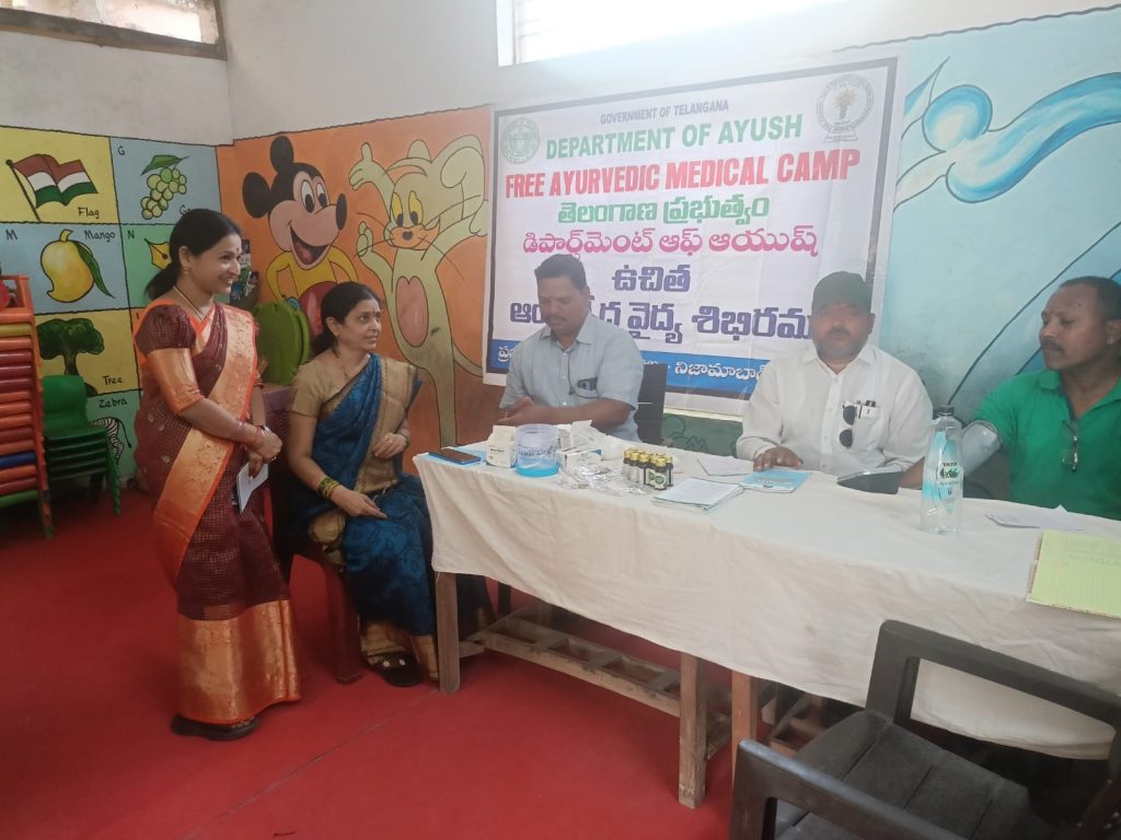 నిజామాబాద్ పట్టణం లోని రాధ కృష్ణ పాఠశాల. ఆర్య సమాజ్ లో సుమారు 300 మంది విద్యార్థిని ,విద్యార్థులకు ఉచిత ఆరోగ్య పరీక్షలు నిర్వహించి ఉచితముగా ఔషధములు పంపిణీ చేసి ఆరోగ్య సూత్రాలు, ఆహార నియమాల, యోగ, దినచర్య, రుతుచర్య ల గురించి వివరించినట్లు జిల్లా ఆయుష్ విభాగం ఇంచార్జి డాక్టర్ జె. గంగా దాస్ తెలిపారు.ఈ వైద్య శిబిరం లో పాఠశాల ప్రిన్సిపల్స్ అనిత, సునీత,, ఆయుష్ విభాగం ఫార్మా సిస్ట లు న్యవానంది పురు షో తం, ఉమాప్రసాద్, ఆయుష్ సిబ్బంది రమేష్, భిక్షపతి,మహేష్,ఉపాధ్యాయులు నారాయణ మరియు విద్యార్థులు పాల్గొన్నారు. ఈ వైద్య శిబిరం నిర్వహించినందుకు పాఠశాల తరపున అభినందించారు. ఆయుష్ కరదీపికలను పంపిని చేశారు.
