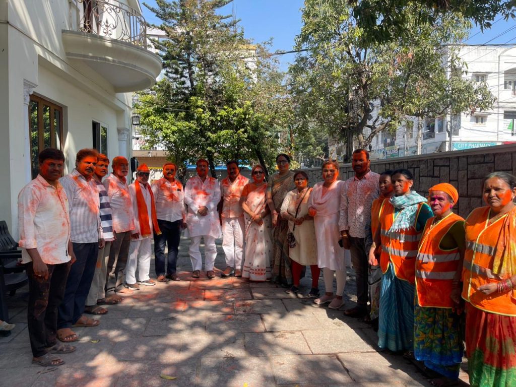 కార్యక్రమంలో నాయకులు, కార్యకర్తలు ఒకరికి ఒకరు రంగులు చల్లుకుంటూ, మిఠాయిలు పంచుకుంటూ సంతోషంగా వేడుకలను నిర్వహించారు.