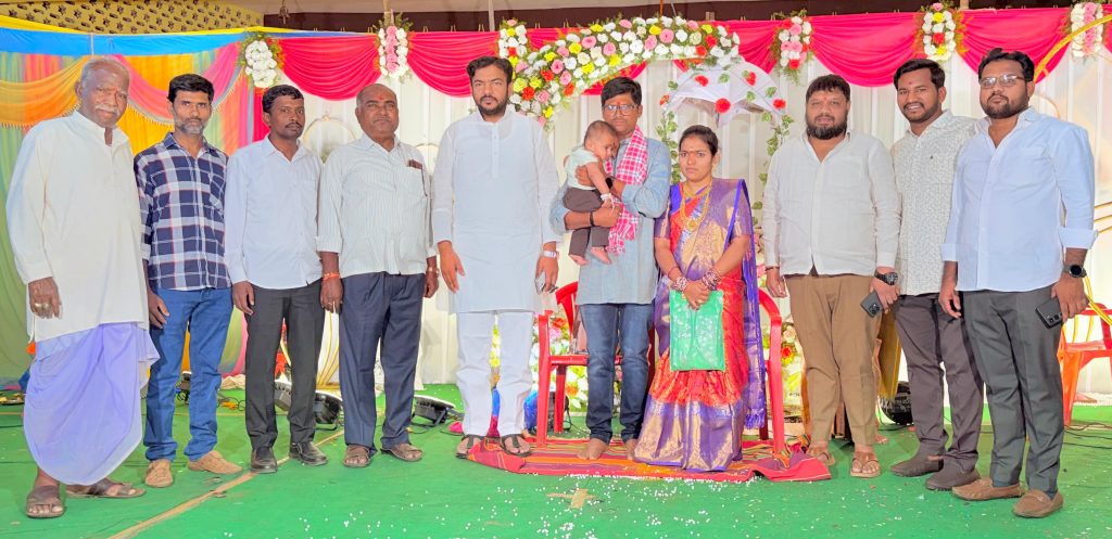 జహీరాబాద్ పట్టణంలోని పద్మశాలి భవన్ లో శుక్రవారం మధ్యాహ్నం మధుసూదన్ గారి కుమారుని డోలారోహణము శుభకార్యం లో పాల్గొని అక్షింతలు వేసి ఆశీర్వదించిన తెలంగాణ రాష్ట్ర ఇండస్ట్రియల్ కార్పొరేషన్ మాజీ చైర్మన్ మొహమ్మద్ తన్వీర్ గారు వారితో పాటు పద్మశాలి సంఘం అధ్యక్షుడు గడ్డం జనార్ధన్ దోమల పండరి జనరల్ సెక్రెటరీ పద్మ రమేష్ బిజీ సందీప్ మొహమ్మద్ ముబీన్ మహమ్మద్ సిరాజ్ తదితరులు ఉన్నారు