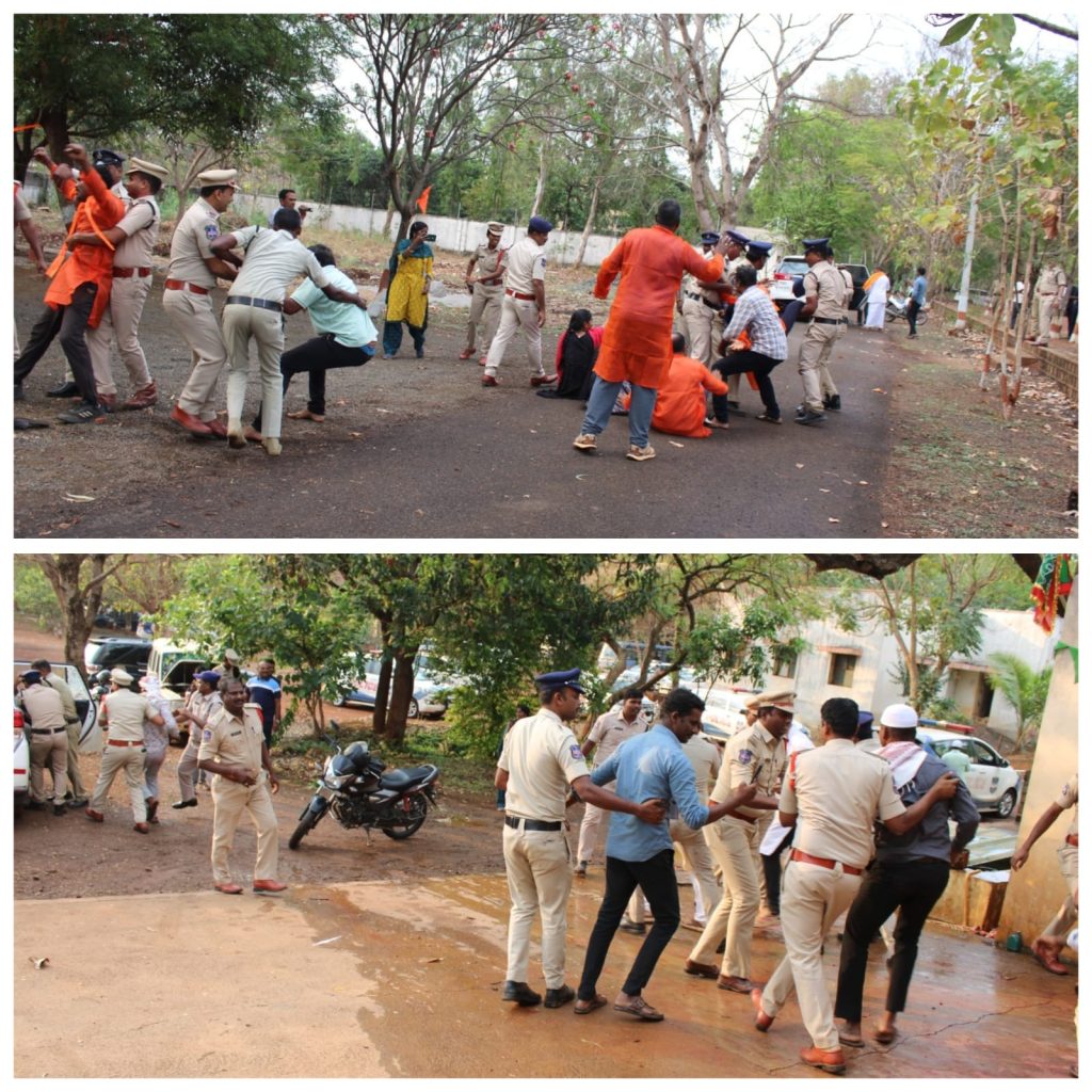 జిల్లాలో శాంతిభద్రతల పరిరక్షణకు పెద్దపీట వేస్తూ, ఆకస్మికంగా తలెత్తే మతపరమైన సమస్యలను (Communal Issues) సమర్థవంతంగా ఎదుర్కోవడమే లక్ష్యంగా జిల్లా ఎస్పీ స్నేహ మెహ్రా, IPS ఆధ్వర్యంలో పోలీసు అధికారులకు మరియు సిబ్బందికి ఒకరోజు ప్రత్యేక “యాంటీ డిసెక్రేషన్ డ్రిల్” (Anti-Desecration Drill) శిక్షణ కార్యక్రమం నిర్వహించబడింది. జిల్లా పోలీస్ కార్యాలయంలో జరిగిన ఈ శిక్షణలో బ్లూ కోల్ట్స్, పెట్రో కార్స్ సిబ్బందితో పాటు జిల్లాలోని ఉన్నత పోలీసు అధికారులు,డీఎస్పీ లు,ఎస్.ఐ లు, సీఐ లు పాల్గొన్నారు. ఈ సందర్భంగా ఎస్పీ మాట్లాడుతూ, సమాజంలో అల్లర్లు సృష్టించే శక్తుల పట్ల అప్రమత్తంగా ఉండాలని, మతపరమైన ఎవరి మనోభావాలు దెబ్బతినకుండా ముందస్తు చర్యలు చేపట్టడం అత్యంత ప్రాధాన్యత కలిగిన అంశమని స్పష్టం చేశారు. శిక్షణలో భాగంగా, క్షేత్రస్థాయిలో అల్లర్లు జరిగినప్పుడు పోలీసులు తీసుకోవాల్సిన ముందస్తూ చర్యలు జాగ్రత్తలు, శాంతిభద్రతలకు విఘాతం కలగకుండా అనుసరించాల్సిన వ్యూహాలపై పవర్ పాయింట్ ప్రెజెంటేషన్ (PPT) ద్వారా వివరించారు. ముఖ్యంగా అల్లర్లు తలెత్తినప్పుడు సమయంలో “ఏమి చేయాలి (Dos) – ఏమి చేయకూడదు (Don’ts)” అనే అంశాలపై సిబ్బందికి స్పష్టమైన అవగాహన కల్పించారు. రెచ్చగొట్టే ప్రసంగాలు, సామాజిక మాధ్యమాల్లో వచ్చే వదంతులను అరికట్టడం, మరియు పరిస్థితిని అదుపులోకి తెచ్చే క్రమంలో సంయమనం పాటిస్తూనే కఠినంగా వ్యవహరించడం ఎలాగో వివరించారు. బ్లూ కోల్ట్స్ మరియు పెట్రో కార్స్ సిబ్బంది సంఘటనా స్థలానికి అతి తక్కువ సమయంలో చేరుకుని, పరిస్థితిని ఉన్నతాధికారులకు ఎప్పటికప్పుడు వివరించాలని ఎస్పీ ఆదేశించారు.అనంతరం జిల్లా పోలీస్ పరేడ్ గ్రౌండ్లో ఏర్పాటు చేసిన డెమో (Demo) కార్యక్రమాన్ని ఎస్పీ స్వయంగా పర్యవేక్షించారు. ఆకస్మికంగా ఏదైనా మతపరమైన సున్నితమైన అంశం తలెత్తినప్పుడు, గుంపులను ఎలా నియంత్రించాలి, పరిసరాలను ఎలా భద్రపరచాలి అనే అంశాలపై సిబ్బంది మాక్ డ్రిల్ నిర్వహించారు. ఈ సందర్భంగా ఎస్పీ మాట్లాడుతూ, “పోలీస్ వ్యవస్థ ఎల్లప్పుడూ ప్రజల భద్రత కోసం అప్రమత్తంగా ఉండాలి. క్షేత్రస్థాయిలో సిబ్బంది సమయస్ఫూర్తితో వ్యవహరిస్తేనే శాంతిభద్రతలు కాపాడబడతాయి. ఇలాంటి శిక్షణలు సిబ్బందిలో ఆత్మవిశ్వాసాన్ని పెంచుతాయని” పేర్కొన్నారు. ఇట్టి కార్యక్రమం లో జిల్లా అదనపు ఎస్పీ బి. రాములు నాయక్, DTC డీఎస్పీ శ్రీనివాసులు, DCRB డీఎస్పీ జానయ్య, వికారాబాద్ డీఎస్పీ శ్రీనివాస్ రెడ్డి, పరిగి డీఎస్పీ శ్రీనివాస్, తాండూర్ డీఎస్పీ నర్సింగ్ యాదయ్య, ఏ ఆర్ డీఎస్పీ వీరేష్,సీఐ లు, ఎస్.ఐలు సిబ్బంది తదితరులు పాల్గొనడం జరిగింది