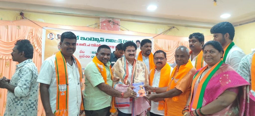 డాక్టర్ బి.ఆర్ అంబేద్కర్ కోనసీమ జిల్లా రావులపాలెంలో బీజేపీ జిల్లా అధ్యక్షులు అడబాల సత్యనారాయణ ఆద్వర్యంలో స్పెషల్ ఇంటెన్సివ్ రివిజన్(ఎస్. ఐ. ర్ )పై జిల్లా నాయకులకు, మండల అధ్యక్షులకు గురువారం అవగాహన కార్యక్రమం నిర్వహించారు. ఈ కార్యక్రమంలో అనపర్తి ఎమ్మెల్యే, ఎస్. ఐ. ర్ రాష్ట్ర కన్వీనర్ నల్లమిల్లి రామకృష్ణారెడ్డి పాల్గొని మాట్లాడుతూ ఎస్. ఐ. ర్ గురించి వివరించారు. ఈ సందర్భంగా ఎమ్మెల్యే రామకృష్ణారెడ్డి కి మాజీ శాసనసభ్యులు మానేపల్లి అయ్యాజీవేమ ముమ్మిడివరం మార్కెట్ కమిటీ వైస్ చైర్మన్ గోలకోటి వెంకట రెడ్డి, బీజేపీ జిల్లా ఉపాధ్యక్షులు గనిశెట్టి వెంకటేశ్వరరావు, జిల్లా ట్రెజరర్ గ్రంథి నానాజీ, అయినవిల్లి మండల అధ్యకులు యనమదల వెంకటరమణ ఘనంగా సత్కరించి , వివేకానంద బుక్ ను బహూకరించారు.