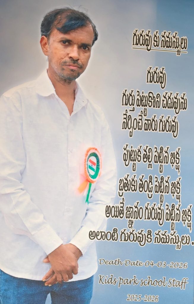 ప్రియమైన గురువును కోల్పోయి కన్నీటిలో విద్యార్థులు, ఉపాధ్యాయులు.నిజామాబాద్ జిల్లా సిరికొండ మండల కేంద్రంలో ఉన్న కిడ్స్ పార్క్ పాఠశాలలో విషాద వాతావరణం నెలకొంది. పాఠశాల కరస్పాండెంట్ జాకీర్ హుస్సేన్ చిత్రపటానికి ఉపాధ్యాయులు, సిబ్బంది పూలమాలలు వేసి ఘనంగా నివాళులర్పించారు. నెల రోజుల క్రితం అనారోగ్యంతో కన్నుమూసిన ఆయన సేవలను స్మరించుకుంటూ పాఠశాల హెడ్మాస్టర్ ఆసిఫ్, ఉపాధ్యాయులు, విద్యార్థులు భావోద్వేగానికి లోనయ్యారు. విద్యార్థుల భవిష్యత్తు కోసం అంకితభావంతో పనిచేసిన గురువును కోల్పోవడం పాఠశాల కుటుంబానికి తీరని లోటుగా మారిందనీ కన్నీరు మున్నీరు అయ్యారు.బాల్యం:తాళ్ల రామడుగు గ్రామానికి చెందిన జాకీర్ హుస్సేన్ సాధారణ కుటుంబంలో జన్మించారు. కుటుంబంలో పెద్ద కుమారుడిగా చిన్ననాటి నుంచే బాధ్యతలను అర్థం చేసుకుంటూ పెరిగారు. చదువుపై ఆసక్తి కలిగిన ఆయన గడ్కోల్ గ్రామంలో ఎస్ఎస్సీ విద్యను అభ్యసించి క్లాస్ ఫస్ట్గా ఉత్తీర్ణత సాధించారు.2011 సంవత్సరంలో జరిగిన రోడ్డు ప్రమాదంలో ఆయన తండ్రి మరణించడం కుటుంబానికి పెద్ద దెబ్బగా మారింది. ఆ తర్వాత కుటుంబ బాధ్యతలన్నీ ఆయన భుజాలపై పడ్డాయి. ఇద్దరు తమ్ముళ్లకు పెద్ద అన్నగా అండగా నిలిచి కుటుంబాన్ని ముందుకు నడిపించారు. కష్టాలను ఎదుర్కొంటూనే చదువు కొనసాగించడం ఆయన పట్టుదలకు నిదర్శనం.విద్యాభ్యాసం – ఉపాధ్యాయ జీవిత ప్రారంభం సమాజానికి ఉపయోగపడే వ్యక్తిగా ఎదగాలనే లక్ష్యంతో హిందీ పండిత్ విద్యను అభ్యసించారు. ఉపాధ్యాయ వృత్తిని సేవగా భావించిన ఆయన రామడుగు పాఠశాలలో ఐదు సంవత్సరాల పాటు పనిచేశారు. అక్కడ విద్యార్థులకు పాఠ్యాంశాలతో పాటు జీవన విలువలు, క్రమశిక్షణ, మంచి నడవడికను బోధించారు.తర్వాత ధర్పల్లి ప్రాంతంలోని ఒక ప్రైవేట్ పాఠశాలలో చేరి దాదాపు పదేళ్ల పాటు సేవలందించారు. విద్యార్థులపై ప్రేమ, అంకితభావంతో మంచి ఉపాధ్యాయుడిగా గుర్తింపు పొందారు.స్వప్నంగా పుట్టిన పాఠశాల. పేద పిల్లలకు నాణ్యమైన విద్య అందించాలని సంకల్పించిన జాకీర్ హుస్సేన్ 2019లో సిరికొండ మండల కేంద్రంలో కిడ్స్ పార్క్ పాఠశాలను స్థాపించారు. ప్రారంభ సంవత్సరంలోనే కరోనా మహమ్మారి కారణంగా లాక్డౌన్ విధించడంతో పాఠశాల నిర్వహణలో తీవ్ర ఇబ్బందులు ఎదురైనా ఆయన వెనుకడుగు వేయలేదు. ఎన్నో ఆర్థిక సమస్యలు వచ్చినప్పటికీ పాఠశాలను నిలబెట్టారు.పేద విద్యార్థులకు పాఠశాలలో ఉచిత విద్య విద్య అందరికీ అందుబాటులో ఉండాలనే లక్ష్యంతో సిరికొండ మండల పరిసర గ్రామాల పేద విద్యార్థులకు ఉచితంగా అడ్మిషన్లు కల్పించారు. పాఠశాల ప్రారంభం నుంచి ఆయన మరణించే వరకు దాదాపు 30 మంది విద్యార్థులకు పూర్తిగా ఉచిత విద్యను అందించారు. ఫీజులు చెల్లించలేని కుటుంబాలకు సహాయం చేస్తూ పి
