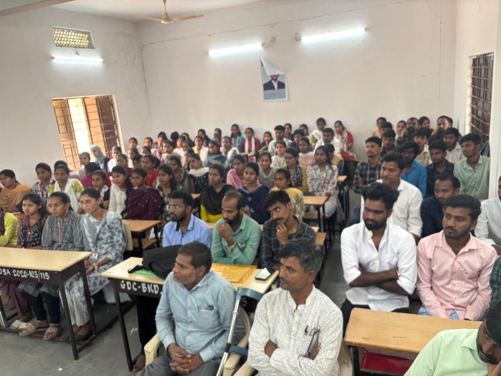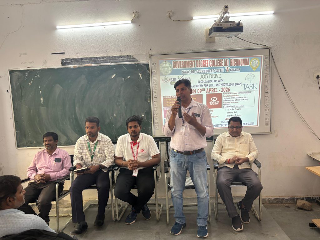 ప్రభుత్వ డిగ్రీ కళాశాల (అటానమస్ )బిచ్కుంద లో నేడు ఐ.క్యూ.ఎ.సి మరియు ప్లేస్మెంట్ సెల్ ఆధ్వర్యంలో నిర్వహించిన జాబ్ మేళాకు స్థానిక విద్యార్థుల తో పాటు నియోజకవర్గంలో ని నిరుద్యోగులు భారీగా హాజరయ్యారు. ముత్తూట్ ఫైనాన్స్ ప్రతినిధి బాలకృష్ణ హెచ్. ఆర్. మేనేజర్, శ్రీ విజయ బయో ఫార్మా కంపెనీ ప్రతినిధి నరేష్ పాల్గొని విద్యార్థులతో ఇంటర్వ్యూ నిర్వహించి జాయినింగ్ ఆర్డర్ ఇచ్చారు. కళాశాల ప్రిన్సిపల్ శ్రీ కె .అశోక్ గారు మాట్లాడుతూ ప్రస్తుత కాలంలో విద్యార్థులకు విద్య మాత్రమే సరిపోదు దానికి తోడు సరైన అవకాశాలు మార్గదర్శనం కూడా అవసరమని మధ్యవర్తిత్వం లేకుండా నేరుగా సంస్థల ప్రతినిధులతో కార్యక్రమం నిర్వహించడం సంతోషకరమని ఎంపికైన విద్యార్థుల కు అభినందనలు తెలియజేశారు. నిర్వాహకులకు ప్రశంసించారు. ప్లేస్మెంట్ సెల్ కోఆర్డినేటర్ డా.టి.అశోక్ రావు మాట్లాడుతూ 130మంది విద్యార్థులు రిజిస్ట్రేషన్ చేసుకున్నారని అందులో 31 మంది నిరుద్యోగులు ఉద్యోగాలు సాధించారని తెలియజేశారు. ఈ కార్యక్రమంలో కళాశాల ఐ. క్యు. ఏ.సి కోఆర్డినేటర్ డాక్టర్ జి. రమేష్ బాబు, అధ్యాపకులు విద్యార్థినీ విద్యార్థులు పాల్గొన్నారు