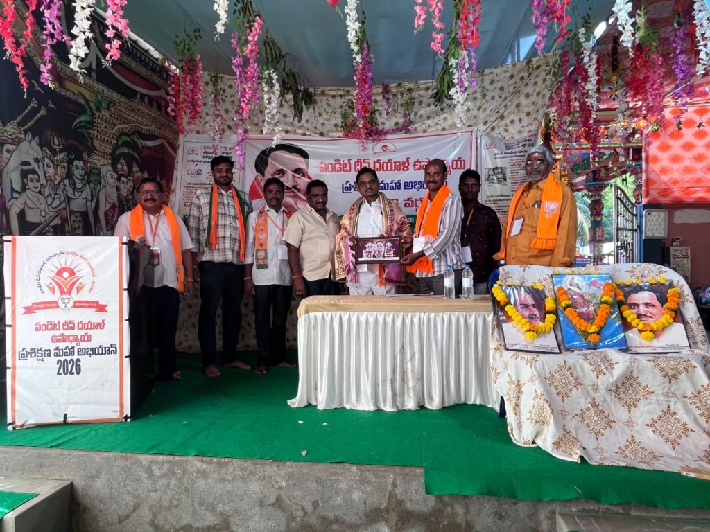 డాక్టర్ బి.ఆర్ అంబేద్కర్ కోనసీమ జిల్లా ముమ్మిడివరం నియోజకవర్గం కాట్రేనికోన మండల పండిట్ దీన్ దయాల్ ఉపాధ్యాయ ప్ర శిక్షణ మహా అభియాన్ 2026 సందర్భంగా శ్రీ సమేత కళ్యాణ రామస్వామి కళ్యాణమండపం నందు సమావేశం జరిగింది ఈ సమావేశం మండల అధ్యక్షులు మట్ట శివకుమార్ జిల్లా కోశాధికారి గ్రంధి నానాజీ ఆధ్వర్యంలో కార్యక్రమం జరిగింది ఈ కార్యక్రమంలో నాగిరెడ్డి సతీష్ రావు డిఎస్పి రమ వర్మ రాంబాబు గనిశెట్టి వెంకటేశ్వరరావు సలాది వీరబాబు గోలకోటి వెంకటరెడ్డి సుంకర నాగేశ్వరరావు మట్టా సూరిబాబు కోటా సత్య ప్రసాద్ ఇళ్ల సత్యనారాయణ పశువులేటి మహాలక్ష్మి రావు రొక్కాల సత్తిబాబు మండల కార్యకర్తలు జిల్లా నాయకులు పాల్గొన్నారు