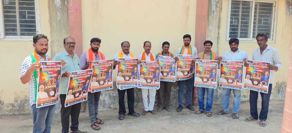 బీజేపీ ఎస్సీ మోర్చా ఆధ్వర్యంలో రాష్ట్ర స్థాయి కబడ్డీ పోటీలు ఈ నెల 12 వ తేదీన నుండి రాజమండ్రి ఆర్ట్స్ కాలేజీ గ్రౌండ్ లో జరిగితాయి అని రాష్ట్ర బీజేపీ కార్యవర్గ సభ్యులు పాలూరి సత్యనందం తెలిపారు. శనివారం ఉదయం జిల్లా ఎస్సీ మోర్చా అధ్యక్షులు ఫోనుగుపాటి శ్రీనివాస్ ఆధ్వర్యంలో కబడ్డీ పోటీలా పోస్టర్ల ను పాలూరి సత్యనందం ముఖ్య అతిధి గా పాల్గొని ఆవిష్కరించారు. ఈకార్యక్రమంలో రాష్ట్ర యువ మోర్చా నాయకులు పాలూరి జయ ప్రకాష్ నారాయణ,యువ మోర్చా జిల్లా ఉపాధ్యక్షులు కోటిపల్లి దామోదర్, ఆత్మ కమిటీ డైరెక్టర్ పాలాటి మాధవ స్వామి, ఇళ్ల పల్లంశెట్టి,సబ్బవరపు సత్యనారాయణ,బిజెపి యువమోర్చ మండల అధ్యక్షుడు వలపుశెట్టి కిరణ్ మరియు కార్యకర్తలు అభిమానులు పాల్గొన్నారు.