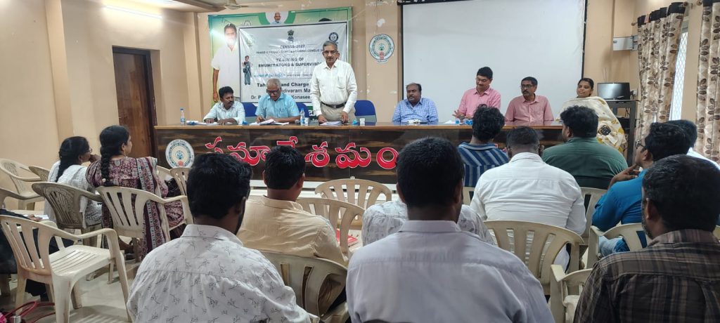 మండల పరిషత్ కార్యాలయము, ముమ్మిడివరం నందు ఇండ్ల జాబితా గణన పై ఎన్యూమరేటర్లు మరియు సూపర్వైజర్ల కు మూడు రోజులు శిక్షణా తరగతులు ప్రారంభము అయినవి. ముమ్మిడివరం రూరల్ నందు 72 హౌస్ లిస్టింగ్ బ్లాకులకు గాను 68 మంది ఎన్యూమరేటర్లు మరియు 11 మంది సూపర్వైజర్ల ను నియమించినట్లు మే 1 నుండి 30 వ తారీఖు వరకు వీరు వారికీ కేటాయించిన హౌస్ లిస్టింగ్ బ్లాకులనందు ప్రజలనుండి వారి ఇండ్ల స్థితి, వసతులు, మొదలైన 34 రకాల వివరాలను మొబైల్ యాప్ ద్వారా సేకరిస్తారు అని తహసిల్దార్ మరియు ఛార్జ్ ఆఫీసర్ అయిన శ్రీ తాడి సుబాష్ తెలిపినారు ,ఈ కార్యక్రములో మండల పరిషత్ అభివృద్ధి అధికారి శ్రీ జె.ఎల్ .యెన్ . దీక్షితులు, డిప్యూటీ తహసిల్దార్ శ్రీ గోపాల కృష్ణ , ఏ.ఎస్.ఓ. శ్రీ కె .ఎల్.ఎన్. శాస్త్రి, మండల రెవిన్యూ ఇన్స్పెక్టర్ రామమోహన్ ,డిప్యూటీ ఎంపీడీవో లు, ఎన్యూమరేటర్లు మరియు సూపర్వైజర్ల లు హాజరైనారు