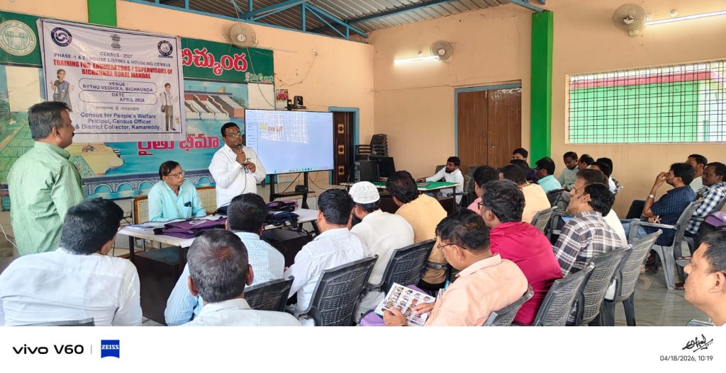 జనగణన–2027 కు సంబంధించిన మొదటి విడుద 50 మంది (ఎన్యూమరేటర్స్) కు సూపర్వైజర్లకు శిక్షణా తరగతులు బిచ్కుంద మండల కేంద్రంలోని రైతు వేదిక బిచ్కుంద నందు శనివారం రోజు జనగణన మండల అధికారి & తహసీల్దార్ వేణుగోపాల్ ప్రారంభించారు. ఈ సందర్భంగా మాట్లాడుతూ జనగణనలో ఎన్యూమరేటర్స్ పాత్ర కీలకం అని, గృహ గణన, గృహ జాబితా తయారు చేయడం చాలా ముఖ్యమైన మొదటి కర్తవ్యం అని చాలా పకడ్బందీగా తప్పులు లేకుండా చేయాలని అన్నారు. మొదటి సారీ పేపర్ వాడకుండా మొబైల్ యాప్ ద్వారానే జనగణన జరుగుతుంది అన్నారు.సహాయ జనగణన మండల అధికారి మండల విద్యాధికారి శ్రీనివాస్ రెడ్డి మాట్లాడుతూ గ్రామాలలో ఇండ్ల జాబితా తయారు చేయడంలో, గ్రామ వివరాలు నమోదు చేయడంలో సంబంధిత గ్రామ పంచాయతీ కార్యదర్శులు సహకరిస్తారని వారి సహకారంతో తప్పులు లేకుండా జనాభా లెక్కలు తయారు చేయాలని తెలిపారు.మొదటి దశలో ఈ క్రింది విధంగా వివరాలు నమోదు చేస్తారు.ఇళ్ల జాబితా ప్రాంతంలో ఉన్న అన్ని ఇళ్లను గుర్తించి, వాటి వివరాలు నమోదు చేయడం. (గృహ గణన) ఇళ్ల సంఖ్య, నిర్మాణం, సౌకర్యాలు (నీరు, విద్యుత్, మరుగుదొడ్డి మొదలైనవి) గురించి సమాచారం సేకరించడం.ఈ శిక్షణా శిబిరంలో మండల ఏ ఎస్ ఓ , గిర్దావర్ సిబ్బంది మాస్టర్ ట్రైనర్ లు పాల్గొన్నారు.