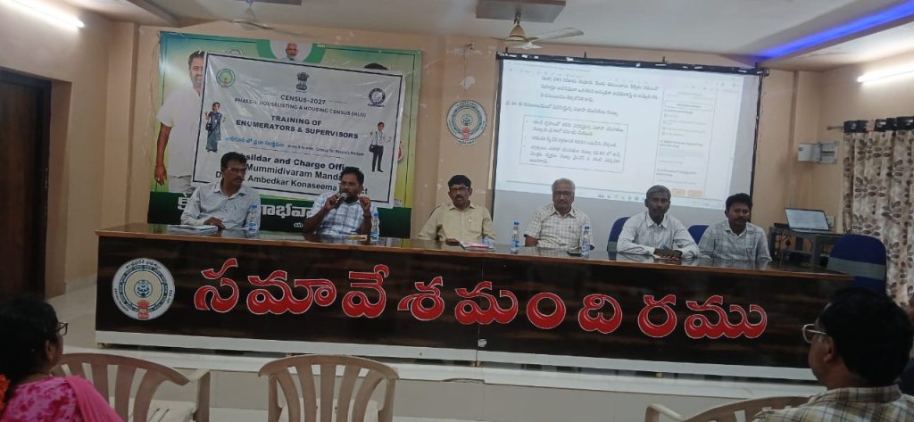 మండల పరిషత్ కార్యాలయము, నందు ఇండ్ల జాబితా గణన పై చివరి బ్యాచ్ ఎన్యూమరేటర్లు మరియు సూపర్వైజర్లకు నిర్వహిస్తున్న శిక్షణా తరగతులను జిల్లా ముఖ్యప్రణాళికాధికారి మరియు జిల్లా మాస్టర్ ట్రయినర్ అయిన శ్రీ ఎం . మురళీకృష్ణ సందర్శిoచినారు. ఈ సందర్భముగా ఆయన మాట్లాడుతూ జిల్లాలో అందరు సచివాలయము ఉధ్యోగులు స్వీయ గణన (సెల్ఫ్ ఎన్యూమరేషన్) విధిగా చేసుకోవాలని మరియు వారి బంధువులు, మిత్రులను కూడా స్వీయ గణన చేసుకునేలా ప్రోత్సహించాలని సూచిoచినారు. మనరాష్ట్రములో స్వీయ గణన కార్యక్రమము ఏప్రిల్ 30వ తేదీతో ముగుస్తుంది కావున ఎన్యూమరేటర్లు మీ పరిదిలో రోజుకు కనీసం 10 నుండి 15 కుటుంబాలు స్వీయ గణన చేసుకునేలా చర్యలు తీసుకోవాలని సూచించినారు. ఈ కార్యక్రమములో తహసిల్దార్ మరియు ఛార్జ్ ఆఫీసర్ అయిన శ్రీ తాడి సుబాష్, డిప్యూటీ తహసిల్దార్ శ్రీ గోపాల కృష్ణ , అమలాపురం డివిజన్ ఉప గణాoక అధికారి శ్రీ ఏ . ప్రభుదాసు , ఏ.ఎస్.ఓ. శ్రీ కె .ఎల్.ఎన్. శాస్త్రి, మండల రెవిన్యూ ఇన్స్పెక్టర్ శ్రీ రామమోహన్ ,మండల ట్రయినర్లు శ్రీ రాంబాబు , శ్రీ దశరధరామయ్య , ఎన్యూమరేటర్లు మరియు సూపర్వైజర్ల లు పాల్గొన్నారు