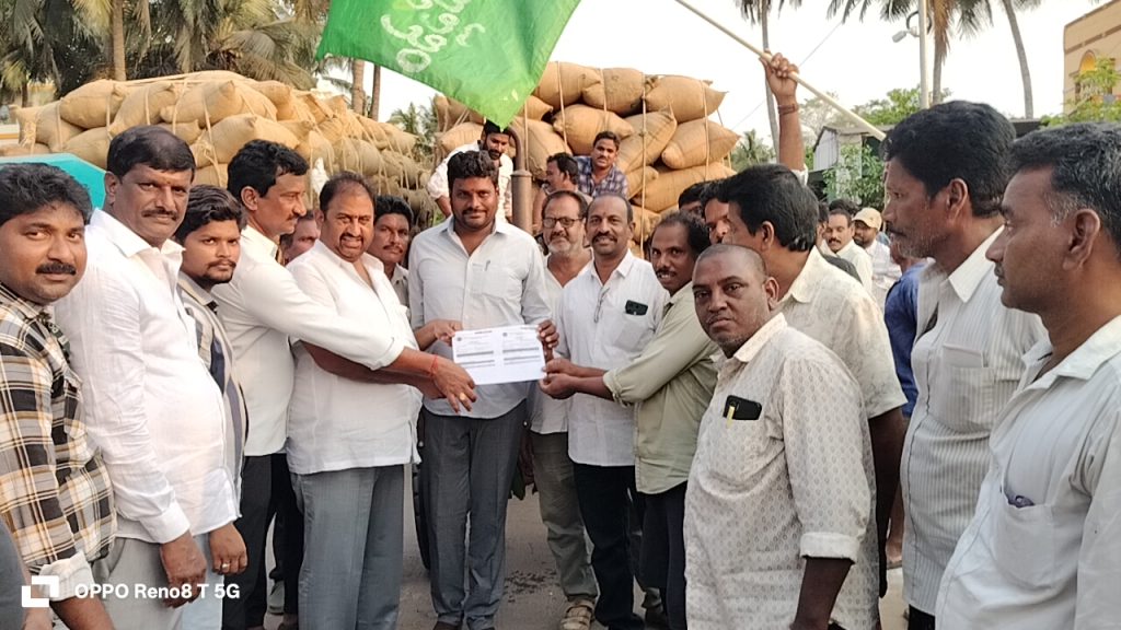 రైతులు కష్టపడి పండించిన ప్రతి ధాన్యము గింజ సరైన మద్దతు ధర కల్పించేందు కు గిట్టుబాటు ధర ఇచ్చేందుకు కూటమి ప్రభుత్వం కృషి చేస్తుందని ప్రభుత్వ విప్, ముమ్మిడివరం ఎమ్మెల్యే దాట్ల సుబ్బరాజు (బుచ్చిబాబు) అన్నారు. రైతు సంక్షేమమే కూటమి ప్రభుత్వం లక్ష్యమన్నారు. ప్రాథమిక వ్యవసాయ పరపతి సంఘాల ద్వారా ట్రాక్టర్లపై వచ్చిన రైతులు ధాన్యం కొనుగోలు కేంద్రాన్ని ఎమ్మెల్యే బుచ్చిబాబు పచ్చ జెండా ఊపి ధాన్యం కొనుగోలును ప్రారంభించారు. శుక్రవారం ఐ. పోలవరం ప్రాథమిక వ్యవసాయ పరపతి సంఘం అధ్యక్షులు కాకర్లపూడి సత్య వెంకట రాయపరాజు ( బుజ్జిరాజు) ఆధ్వర్యంలో ధాన్యం కొనుగోలు కేంద్రాన్ని ఏర్పాటు చేశారు. రైతులు పెద్ద సంఖ్యలో హాజరై పండించిన దాల్వా పంట ధాన్యాన్ని తీసుకువచ్చి సొసైటీ ద్వారా విక్రయించే కార్యక్రమాన్ని విజయవంతం చేశారు. ప్రభుత్వం రైతుల సంక్షేమాన్ని దృష్టిలో పెట్టుకుని ప్రధానంగా భావిస్తూ కనీస మద్దతు ధర (ఏమ్. ఎస్. పి) ప్రకారం ధాన్యాన్ని నేరుగా కొనుగోలు చేయడానికి ఈ కేంద్రాలను ఏర్పాటు చేసిందని తెలిపారు. మధ్యవర్తులపై, దళారులపై ఆధారపడకుండా రైతులు తమ పంటను నేరుగా ప్రభుత్వానికి విక్రయించుకునే అవకాశాన్ని ఐ. పోలవరం సొసైటీ అధ్యక్షులు కాకర్లపూడి సత్య వెంకట రాయప్పరాజు బుజ్జి ద్వారా రైతు సహాయ కేంద్రాలు ఏర్పాటు చేయడం శుభ పరిణామం అన్నారు. కార్యక్రమంలో కూటమి నాయకులు సాగిరాజు సూరిబాబురాజు, పీ న్నమరాజు శివ, దేవు రాంబాబు, నంబూరి సీతారామరాజు, చిలువూరీ సుబ్బరాజు, డి.సి.సి.బి మేనేజర్ జి మనోహర్, సూపర్వైజర్ సుంకర రాంబాబు, సీ.ఈ.ఓ లు కుచ్చర్లపాటి శ్రీనివాసరాజు, జి. ఆంజనేయులు, బాసిరెడ్డి శ్రీనివాసరావు, తదితరులు పాల్గొన్నారు.