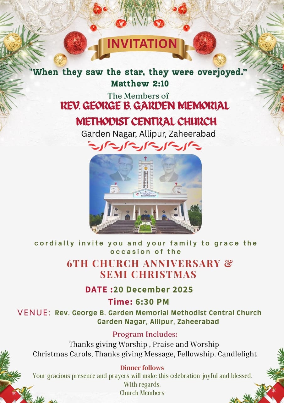నూతనంగా నిర్మించిన చర్చి ఆరు సంవత్సరాలు పూర్తి అయింది సంగారెడ్డి జిల్లా ఇన్చార్జ్ బి వీరేశం జనం న్యూస్ డిసెంబర్ 20 ఘనంగా నిర్వహిస్తున్నారు. ఈ సందర్భంగా చర్చి ప్రాంగణాన్ని ఆకర్షణీయంగా అలంకరించి ప్రత్యేక ప్రార్థనలు నిర్వహించారు. ఐదు రోజుల ముందే…