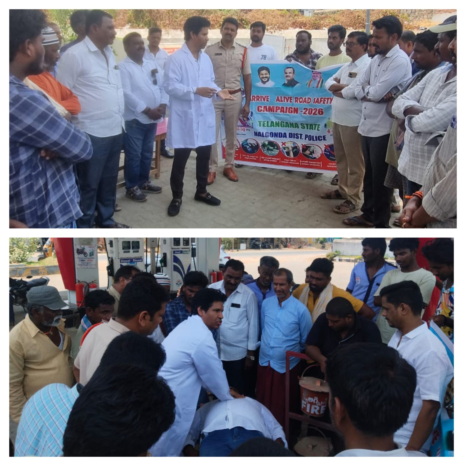 జనం న్యూస్ -ఏప్రిల్ 17- నాగార్జున్ సాగర్ టౌన్- రోడ్డు భద్రతా వారోత్సవాలను పురస్కరించుకొని నాగార్జునసాగర్ టౌన్ పోలీసులు, వైద్య ఆరోగ్యశాఖ సంయుక్త ఆధ్వర్యంలో సి పి ఆర్ విధానం పై అవగాహన కార్యక్రమం స్థానిక హెచ్ పి పెట్రోల్ బంక్…