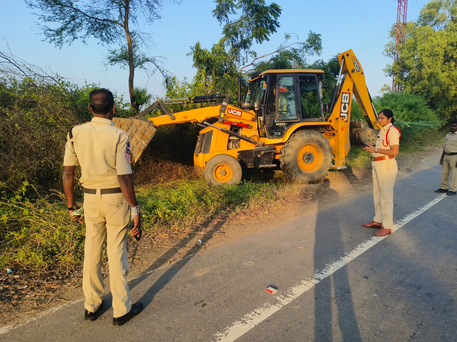 రోడ్డుకు ఇరువైపులా ముళ్లపదలు తొలగింపు