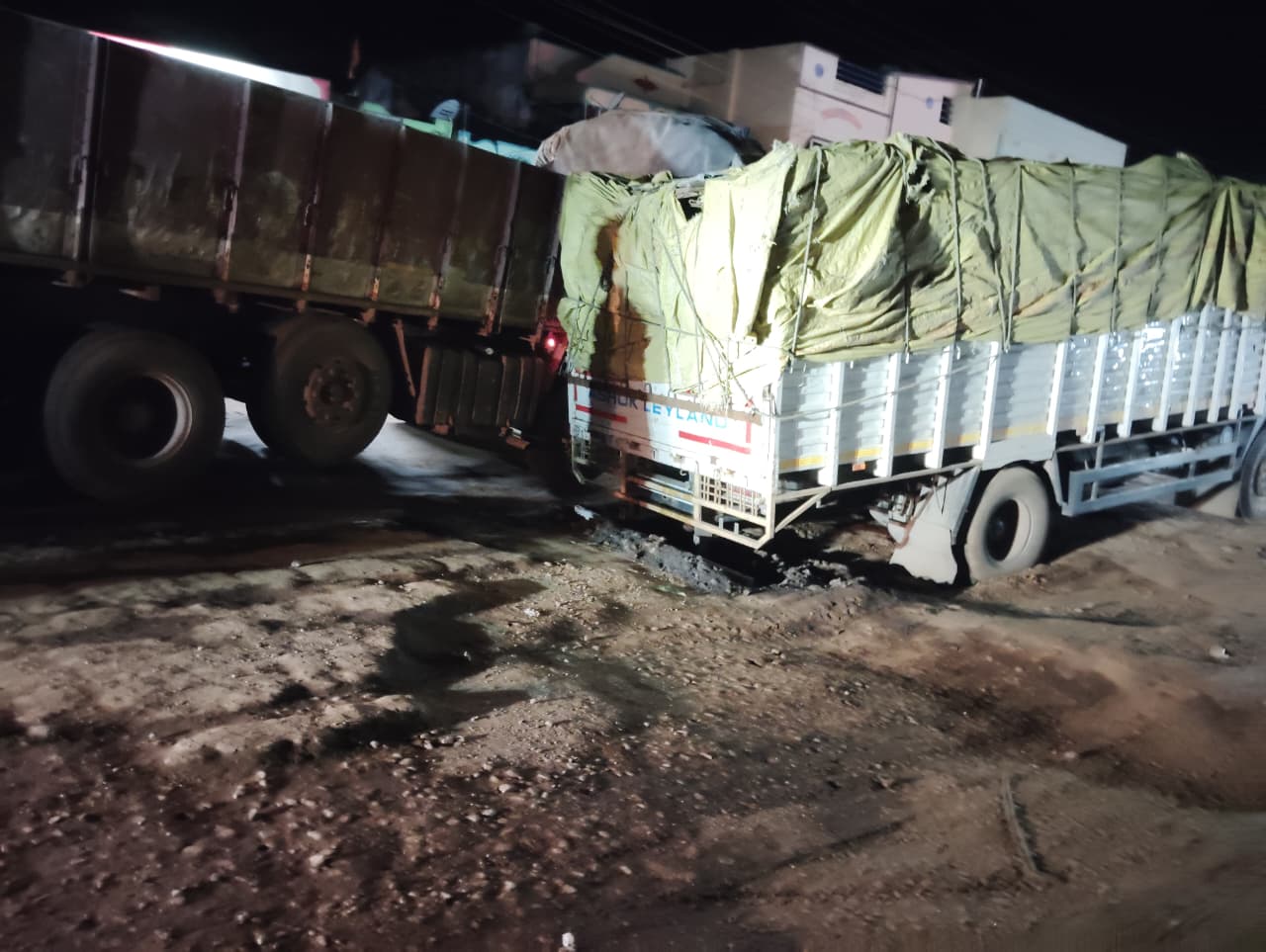 బాడంగి మెయిన్ రోడ్డు గుంతలో ఇరుక్కుపోయిన వ్యాన్