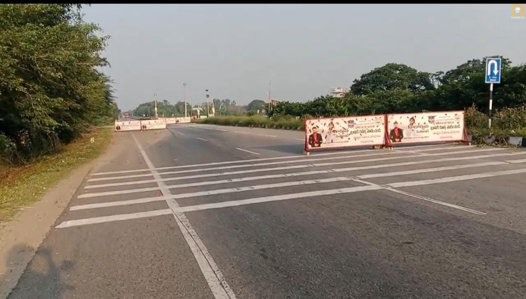 జాతీయ రహదారి పై ప్రమాదాలు నివారించేందుకు బారికేడ్ల ఏర్పాటు